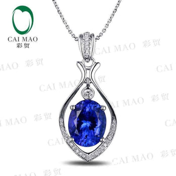 - 18KT/750 White Gold 3.09 ct Natural IF Blue Tanzanite AAA 0.13 ct Full Cut Diamond Engagement Gemstone Pendant Jewelry