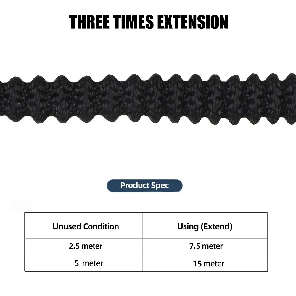 50FT-15M Extended : Unused 16ft( 5m ), Fully stretched 50ft ( 15 meters)