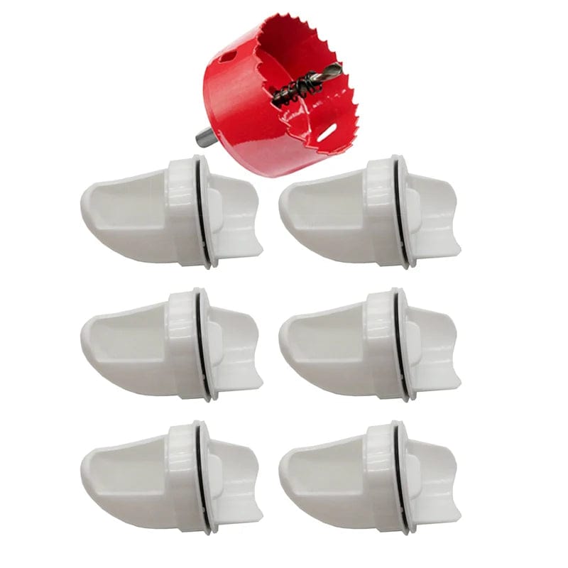 1.Easy install, come with a 3.15''/80mm hole saw, make an outdoor chicken feeder in a minute Come with 4 chicken feeder ports and 1 hole saw; no matter 5 gallon buckets or larger box, you can always make an auto chicken feeder with easy