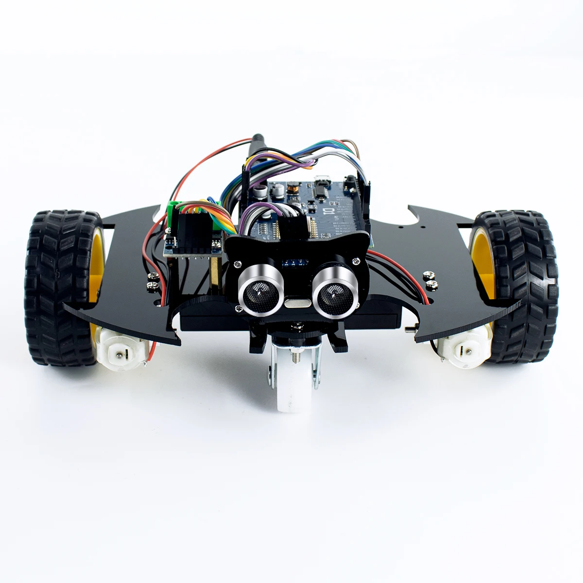 2. With the assistance of the ultrasonic ranging module, it can help the robot car avoid obstacles in front of it.