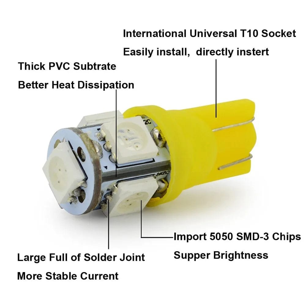YSY Big Promotion T10 W5W 168 194 XENON Light Amber White 5050 SMD 5 LED Car Auto Side Wedge Tail Lights Parking Lamp Bulb DC12V