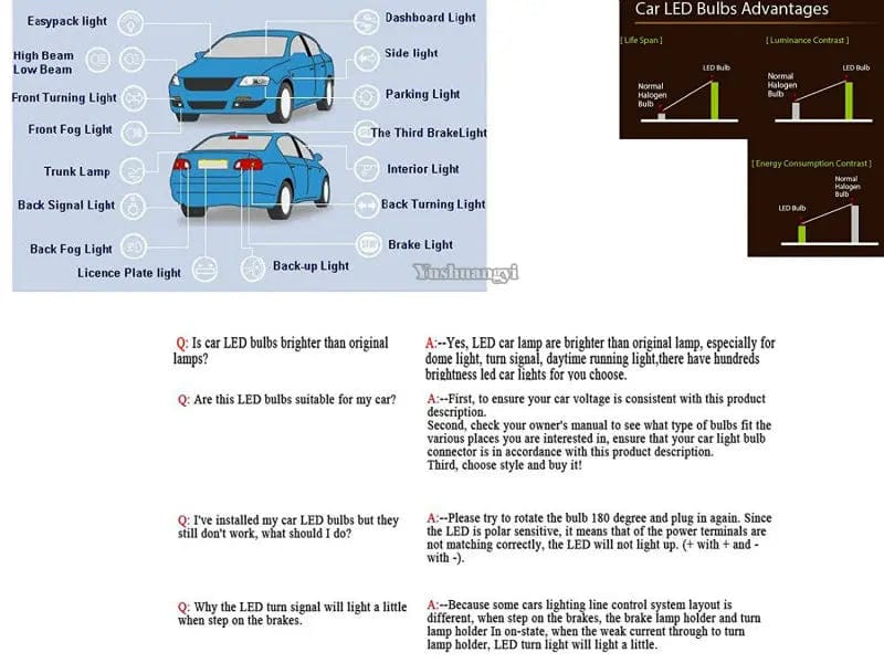 7. Application: Common use for Car, Truck, Motorcycle, Boat, RV, Trailer. Interior (Map,Dome,Trunk...) Light, License Plate Light, Parking Light, Corner Light, Side Marker Light, Tail Light, and Backup Lights,ect.