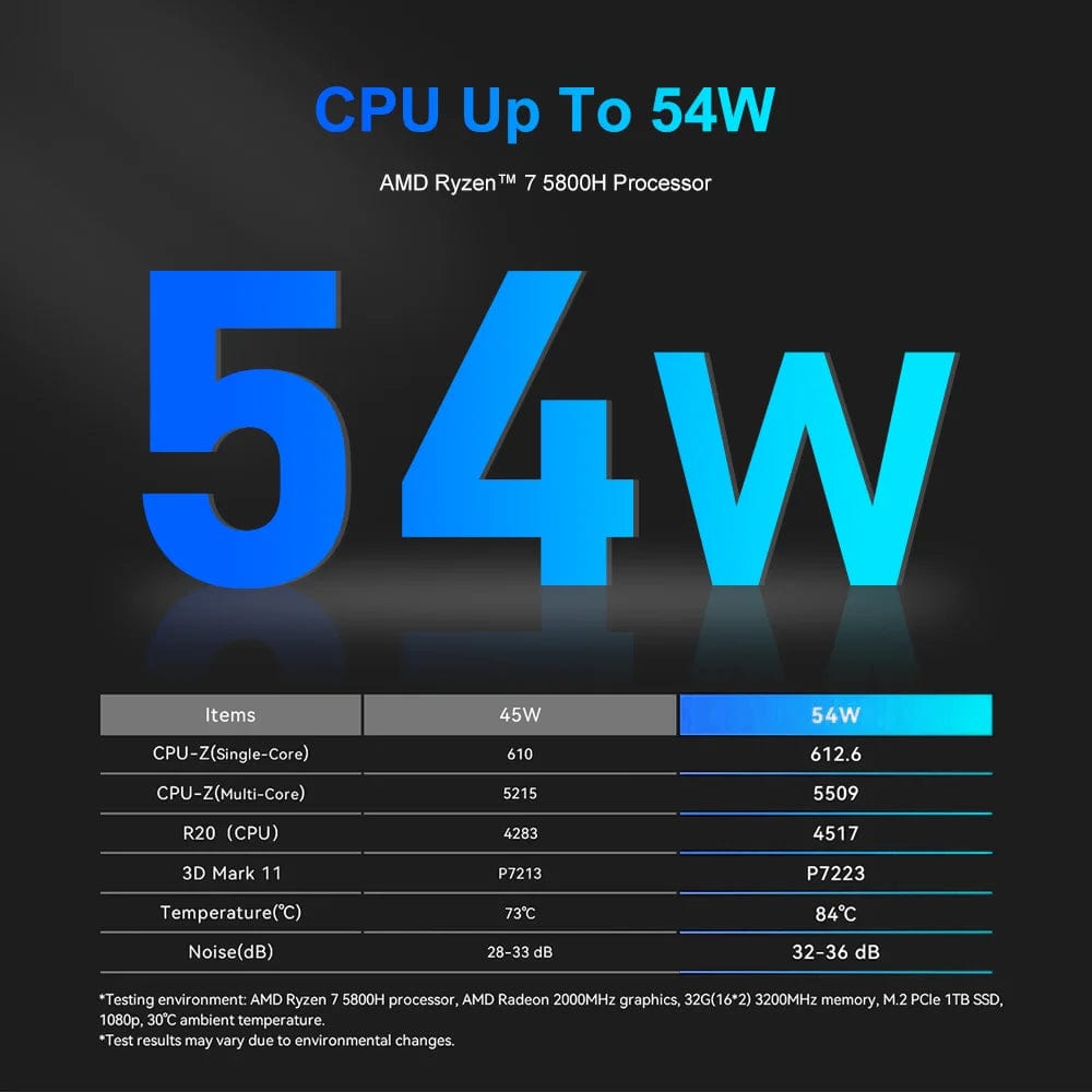 AMD Ryzen™ 7 5800H , 3.2GHz Up to 4.4GHz TDP:35--54W, TYP TDP:54W