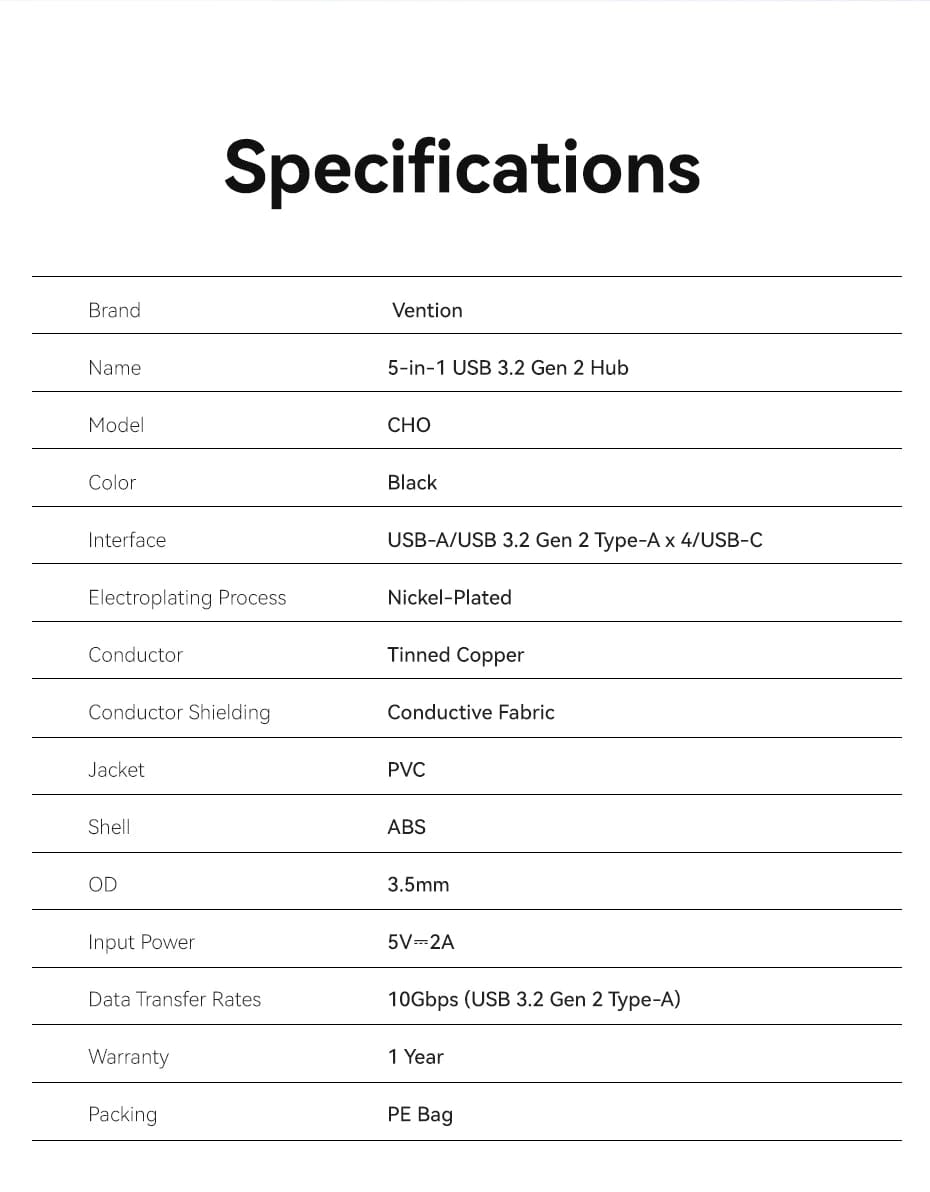 5-in-1 USB 3.2 Gen 2 Hub