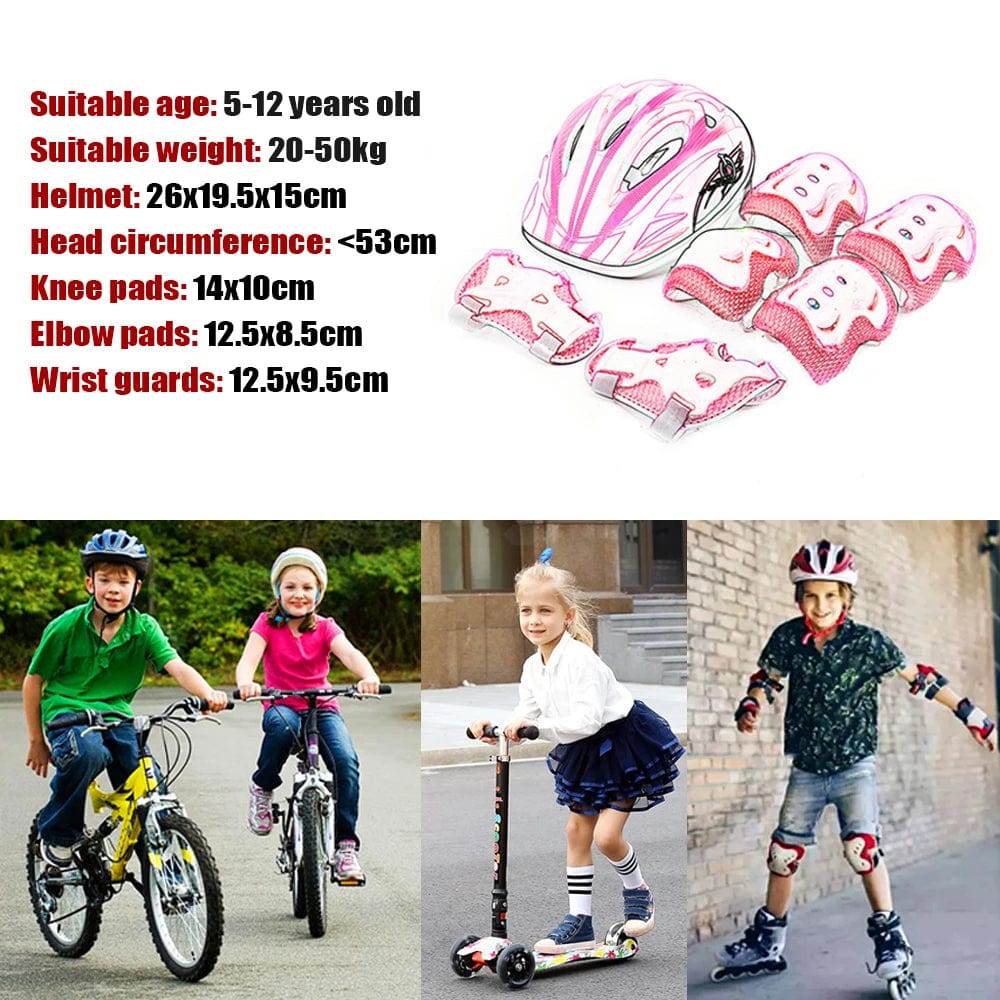 4. Protective Gear Set: 1pc adjustable Kids helmet, 2pcs knee pad, 2pcs elbow pad, 2pcs wrist pad.