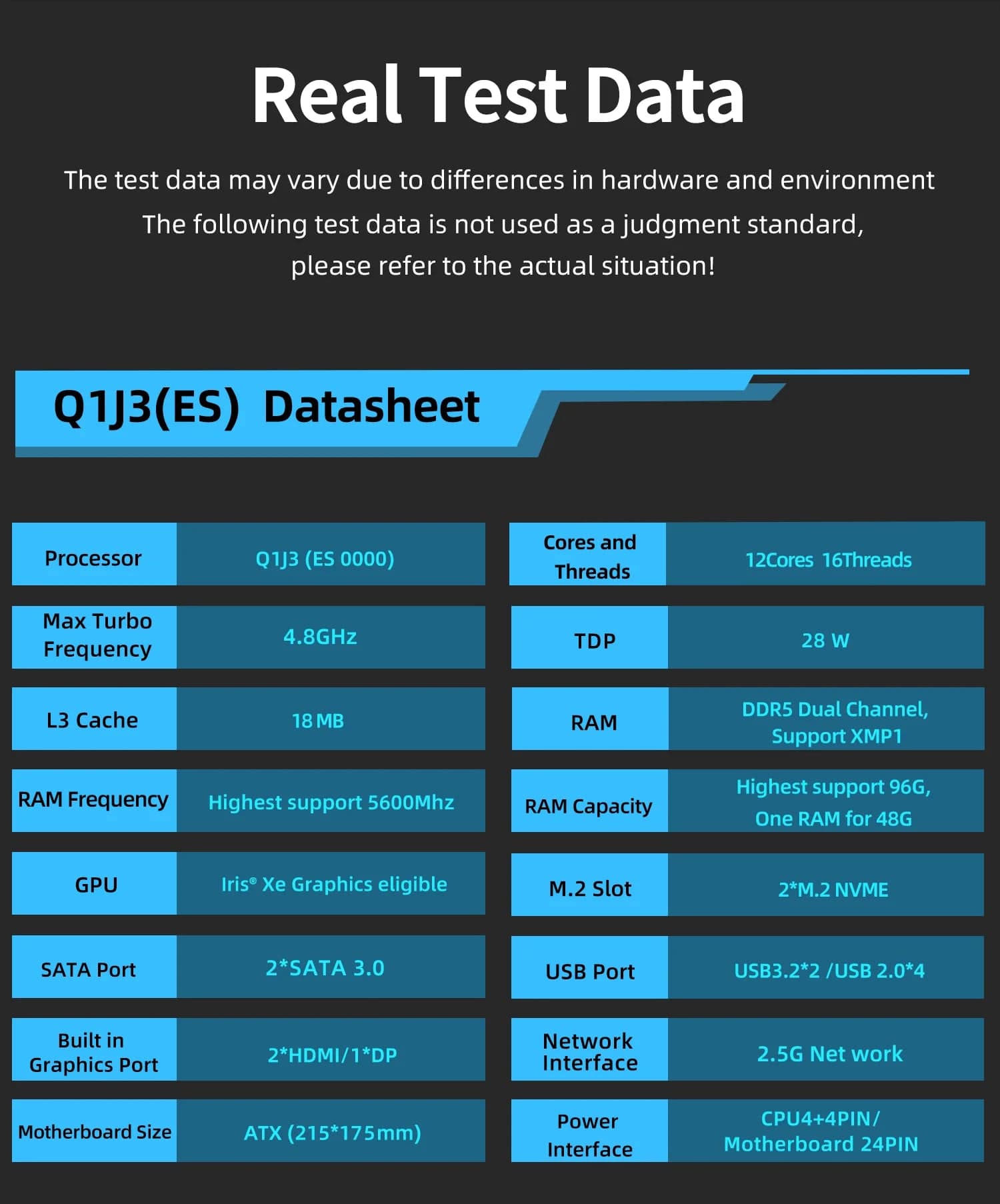 The following test data is just for reference, which can't be used as ajudgment standard. Everything please refer to your actual test environment.