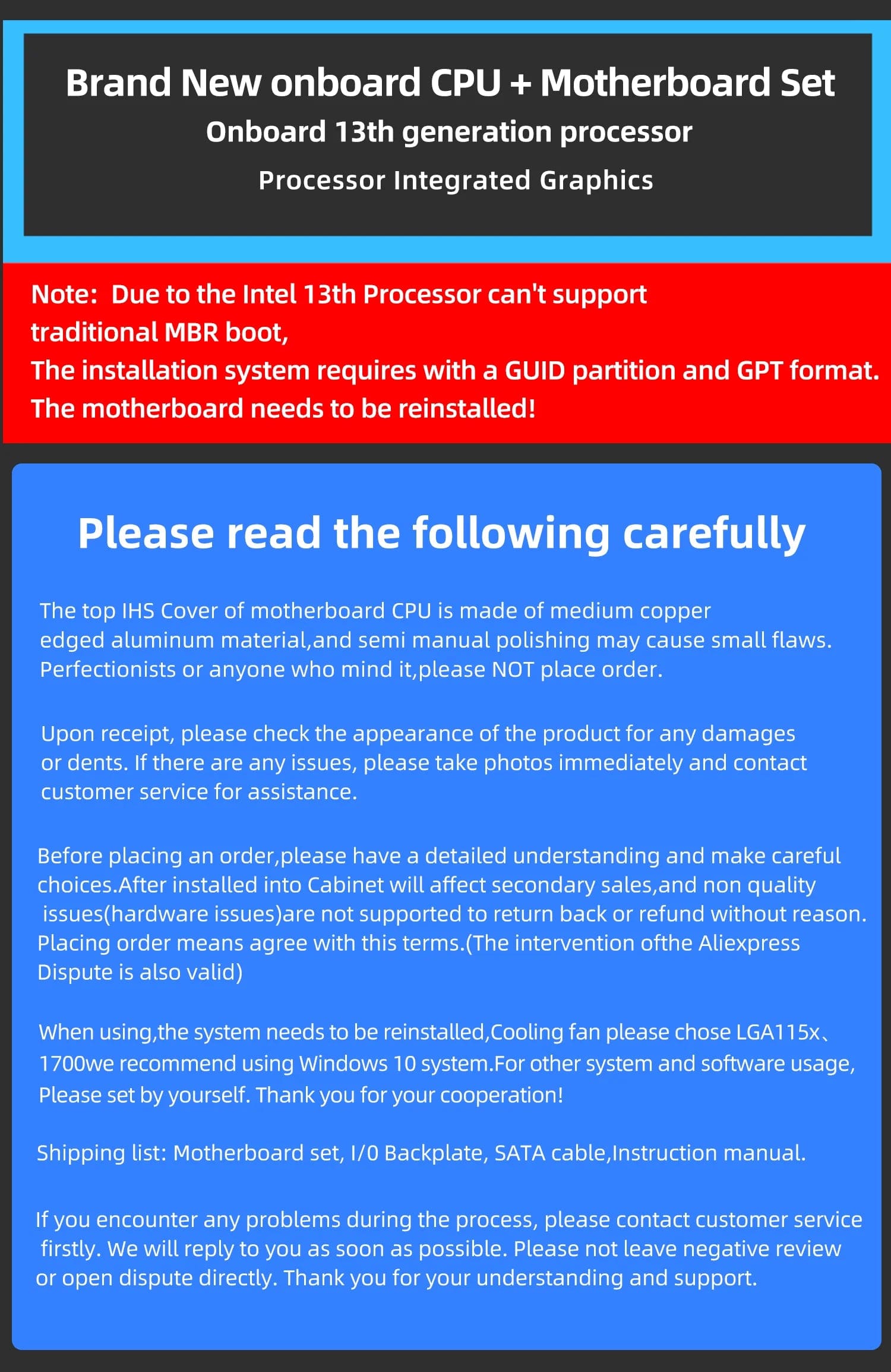 If you place order, It means you are aware of the issue by default.Please read carefully before purchasing.