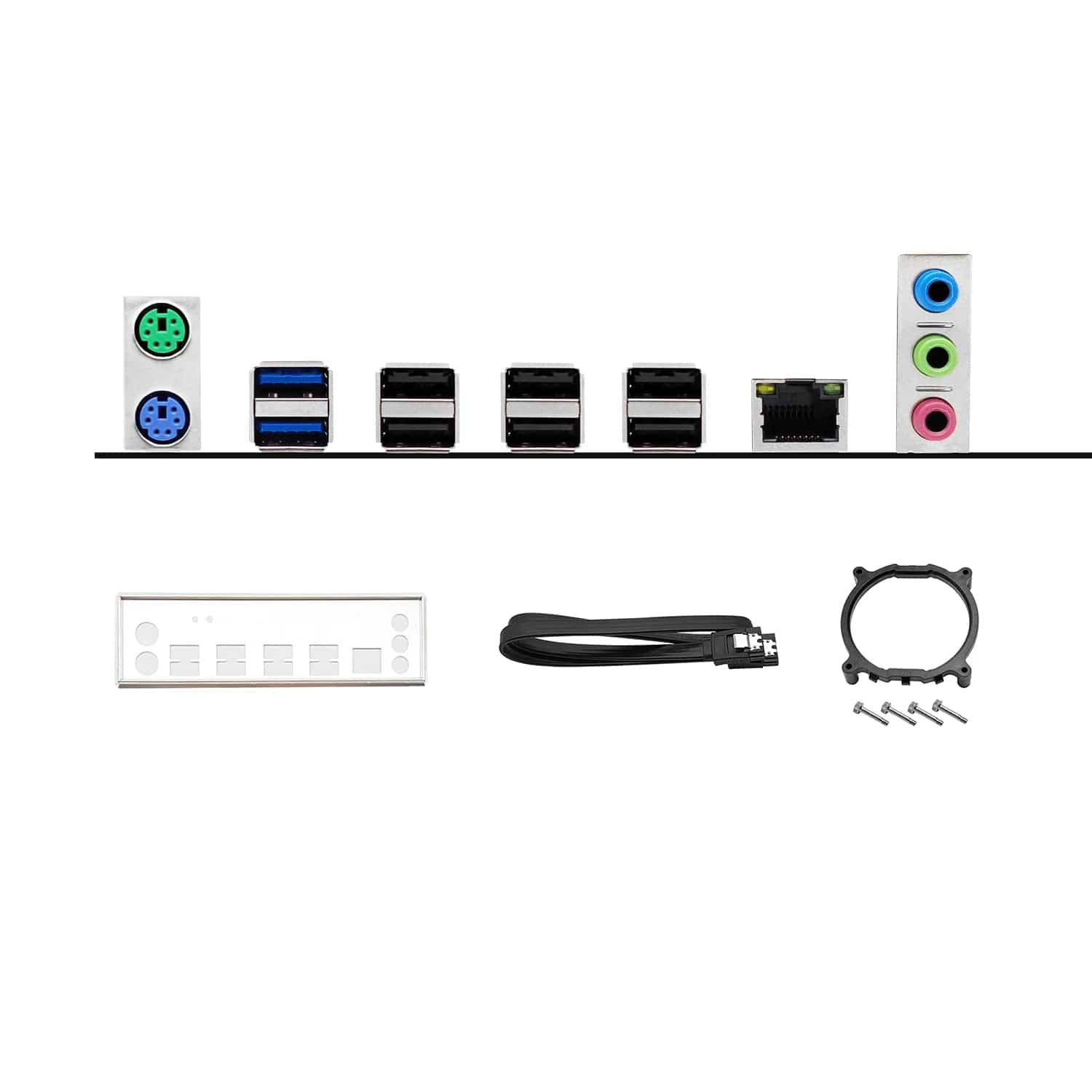 Gift accessories :i/o shield, CPU cooling bracket, sata cable (all manual test packaging, there may be missing, please forgive me!)