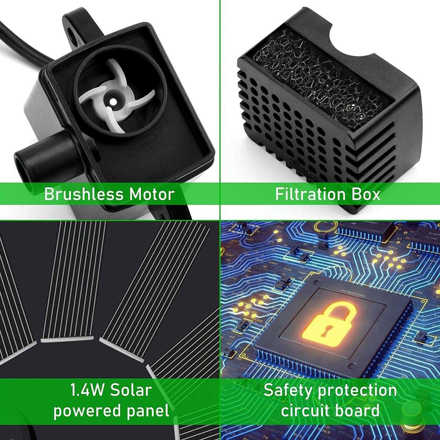 The solar water pump is made of special wafer materials, which quickly converts solar energy into electricity, bringing continuous operating power to the pump.