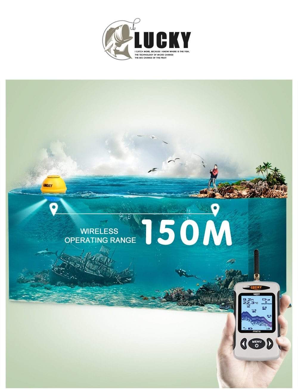 Wireless Sonar: 90 degrees beam angle in 125Khz