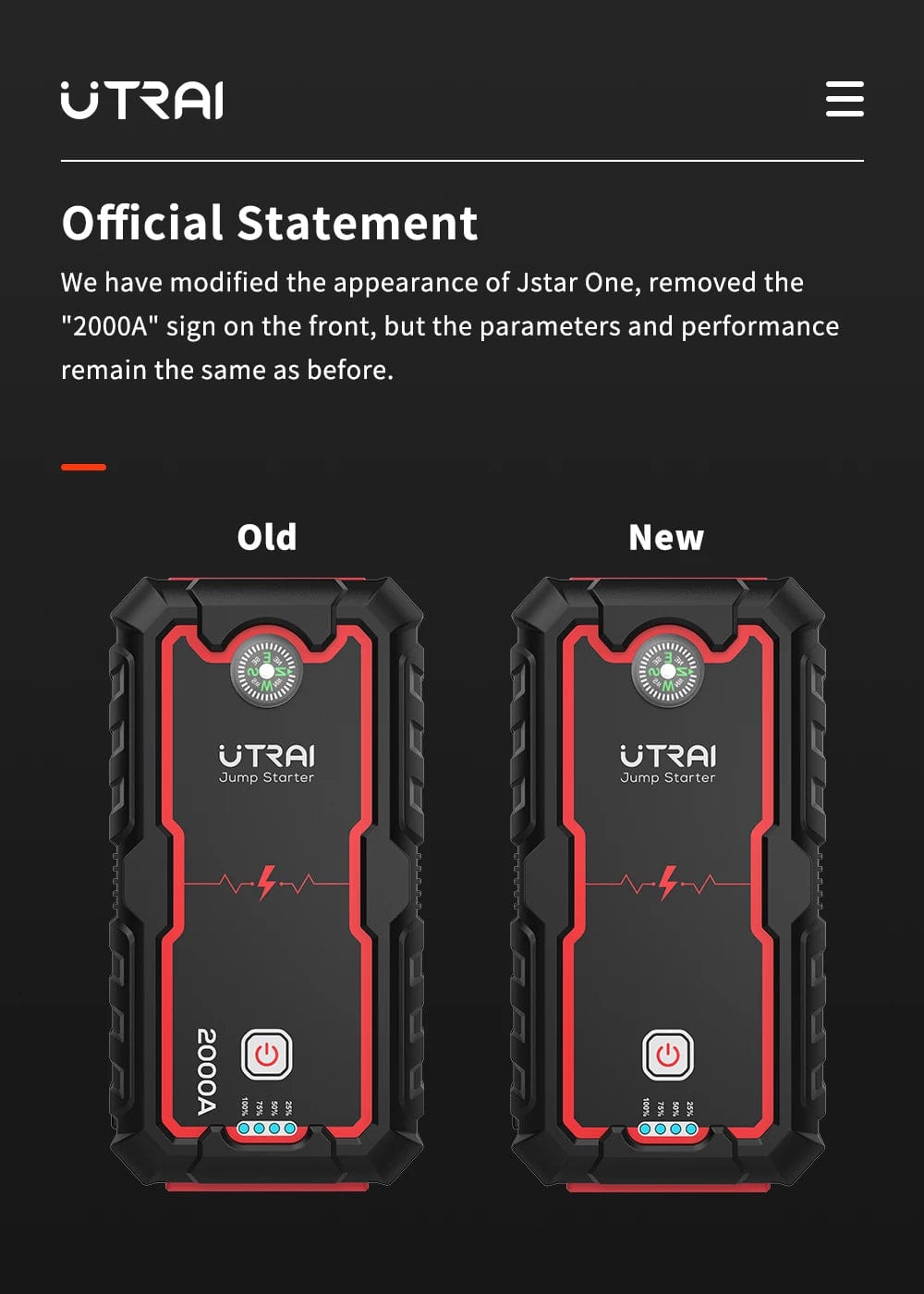 Recently we receive message from some customer to feedback "2000A" sign doesn't in the device, that is because we upgrade the package, the newest device u receive is without 2000A. Without 2000A device just produce recently, and about this change, u could check in Utrai official website too, pls don't worry.
