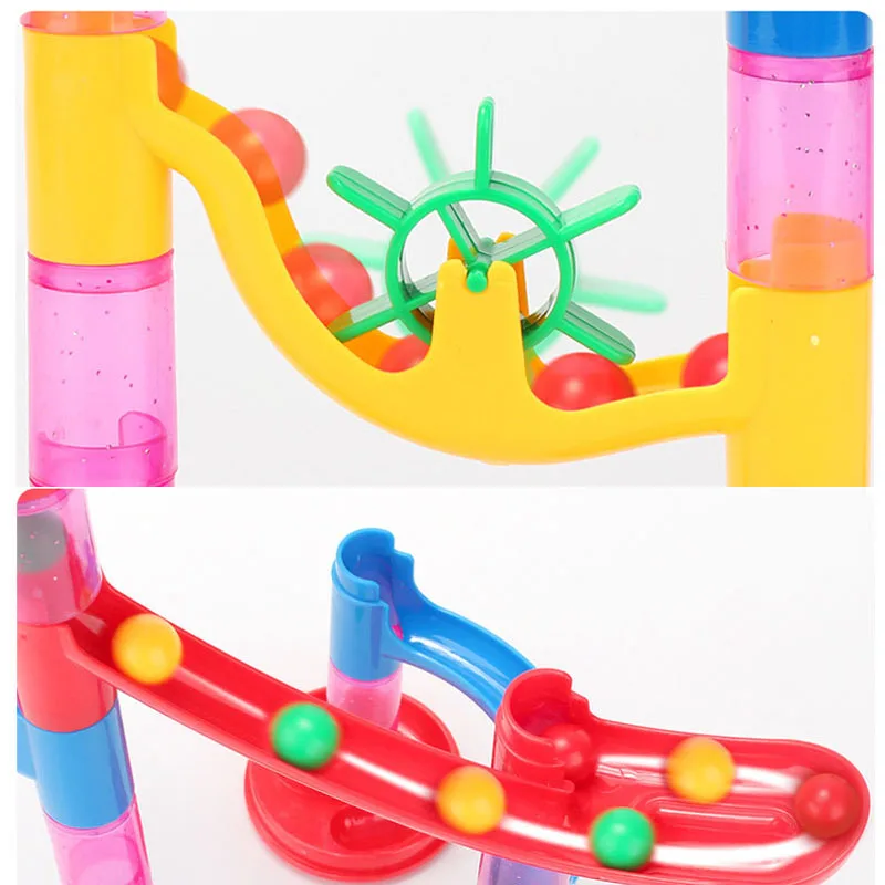 This marble race toy is a blast! The 105pcs DIY trace building blocks are a good educational toy for your family. The marble race track is a great item to teach young kids about momentum and properties of gravity through the marble running in the track. You can put them together as you like, so you can let your kids build the blocks differently each time with their imagination. This is a great game for your family.