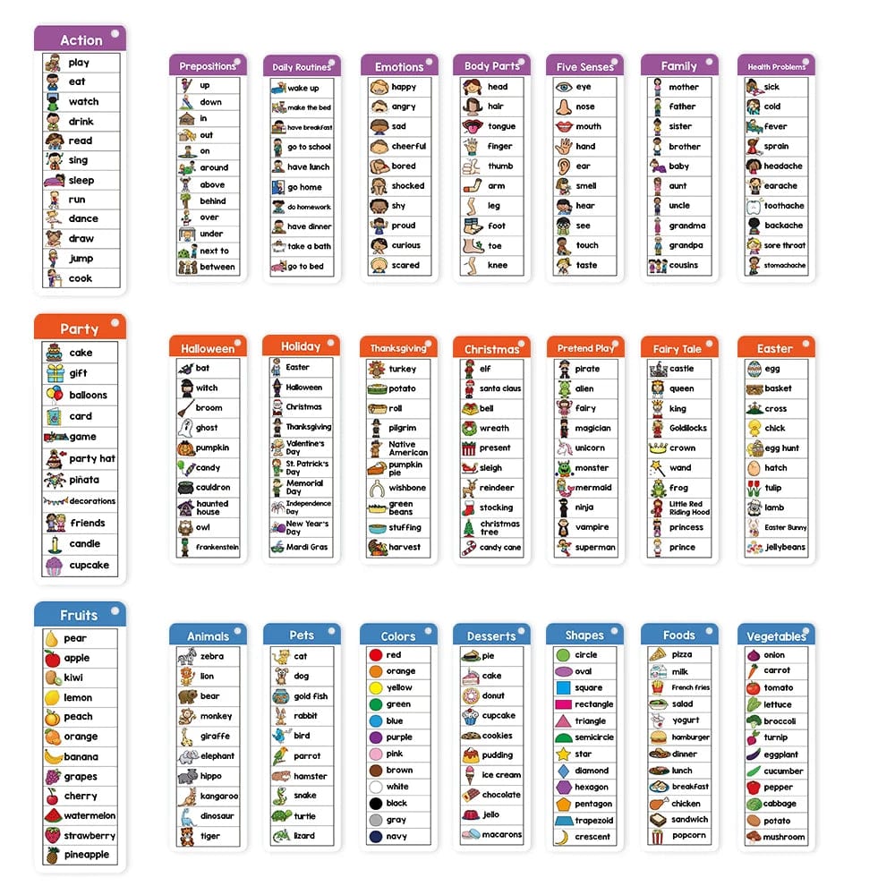 You can get: 40 themes, 426 Words, 21 double side cards in set.