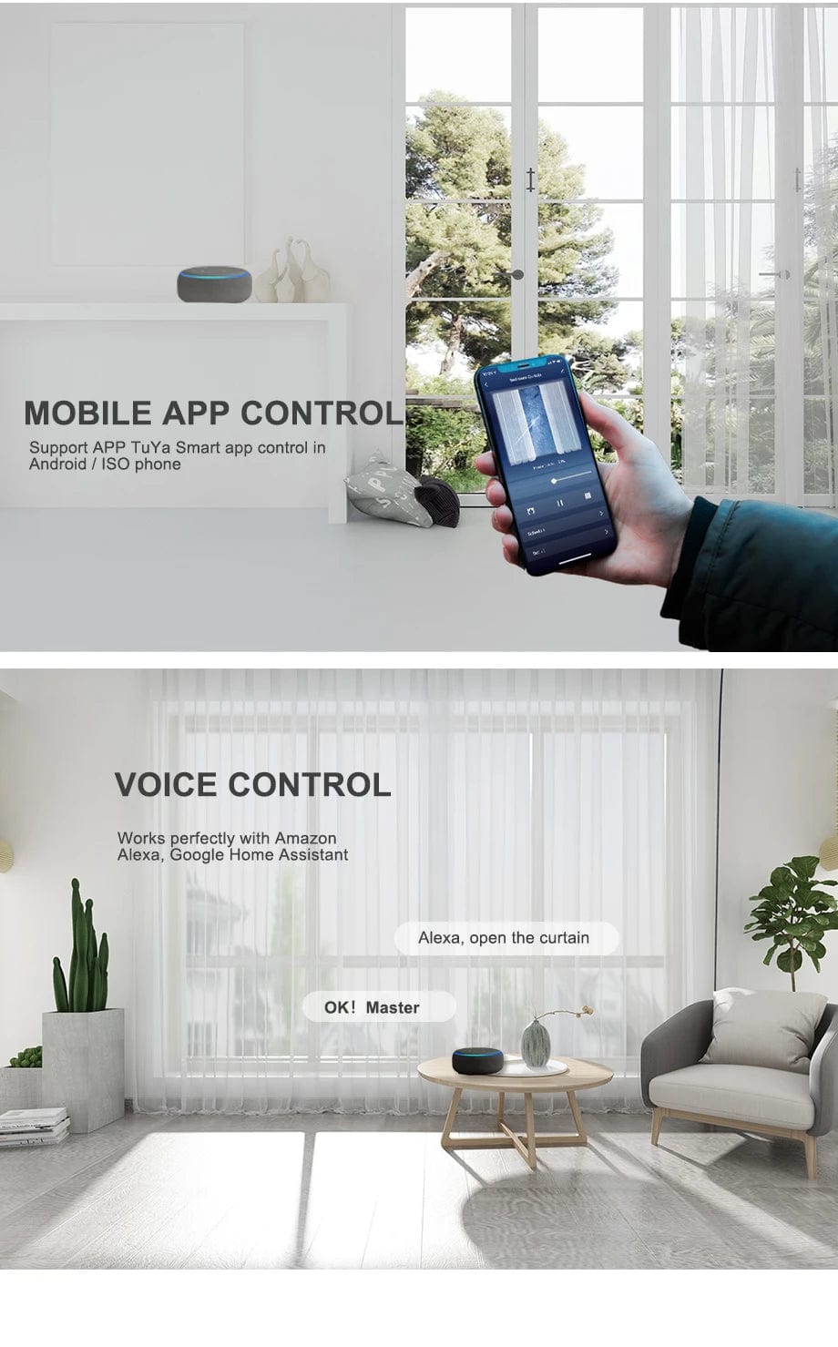 (3) It Supports "Tuya" or "Smart Life" APP control, you can get the IOS/Android Version APP from APP store directly, and Realize Scene Linkage with your existing Amazon Alexa & Google Assistant Devices to Realize