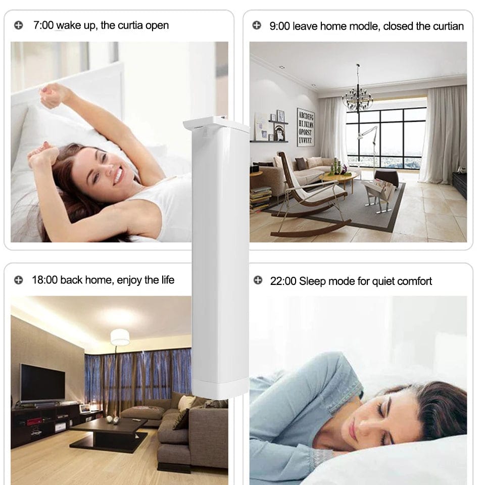 For example: 7:00 open the curtain, let the sunlight slowly wake you up in the morning. 15:00 close the curtain to prevent the strong ultraviolet rays of sunlight damaging the furniture.