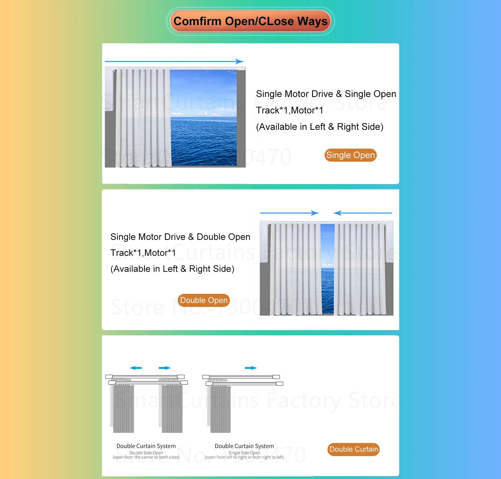 (2) We will ship as Ceiling Mounted,straight track, Middle Open in default, If the buyer does not leave a message and does not communicate with the seller.