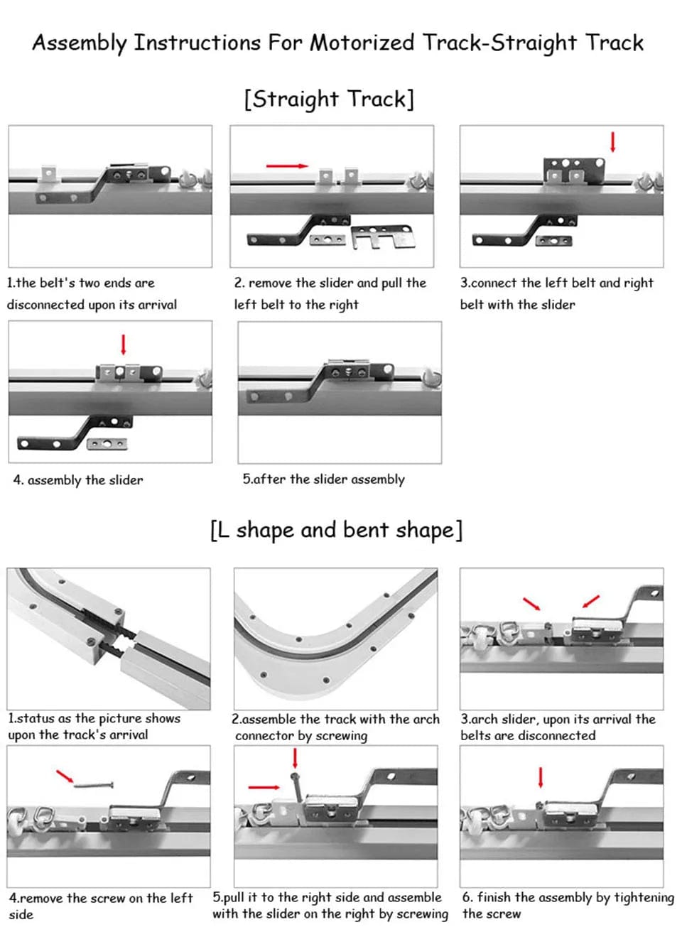 (4) Pls install slip parts assemble before operating track. Don't install motor to track until you can operate track smoothly manual. Or belt may be destroyed.