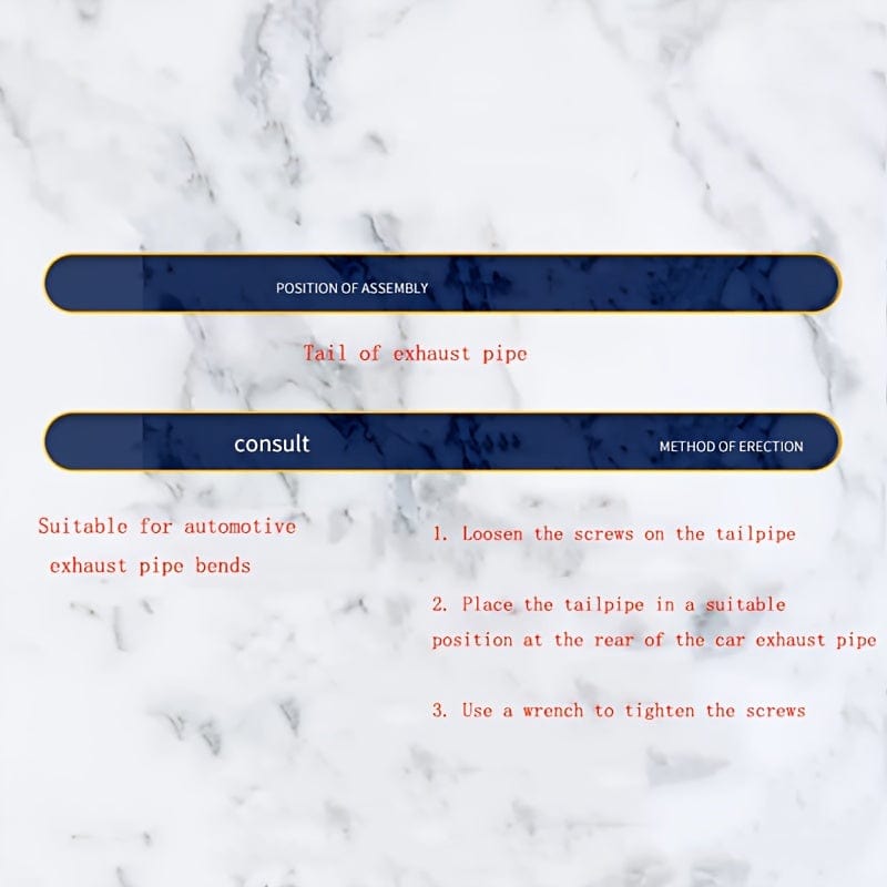 Use screw connection method, loosen the screw on the tail pipe, put the tail pipe on the appropriate position of the tail of the car exhaust pipe, and then tighten the screw with a wrench.