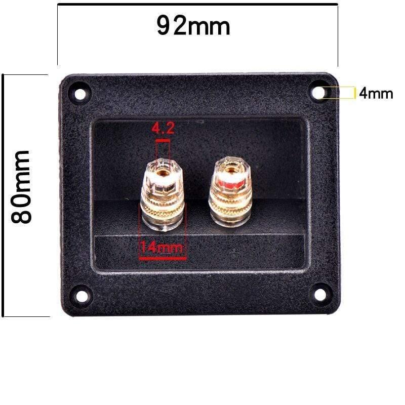 External Size: 92x80mm Internal Size (Install hole) : 74x54mm Panel Thichness: 3.2mm Screw Holes: 4.2mm Binding Post Hote: 3.8mm Binding Post Diametre: 14mm Net Weight: approx 54g Box Shell Material: Plastic Binding Post Material: Pure Copper