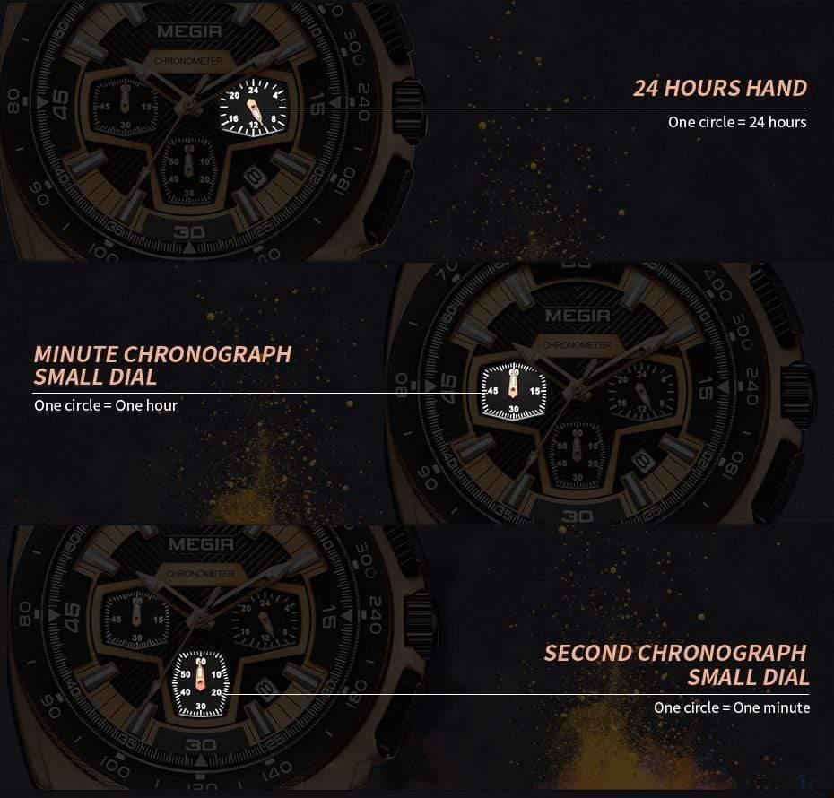 Feature: Auto Date,Complete Calendar,Luminous Hands,Water Resistant,Stop Watch,Chronograph