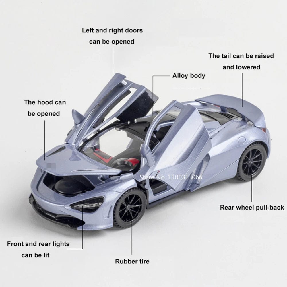 1/32 Scale 720S Alloy Sports Cars Model Diecasts Toys Metal Vehicles Model with Sound Light Doors Can Be Opened Car for Boy Gift