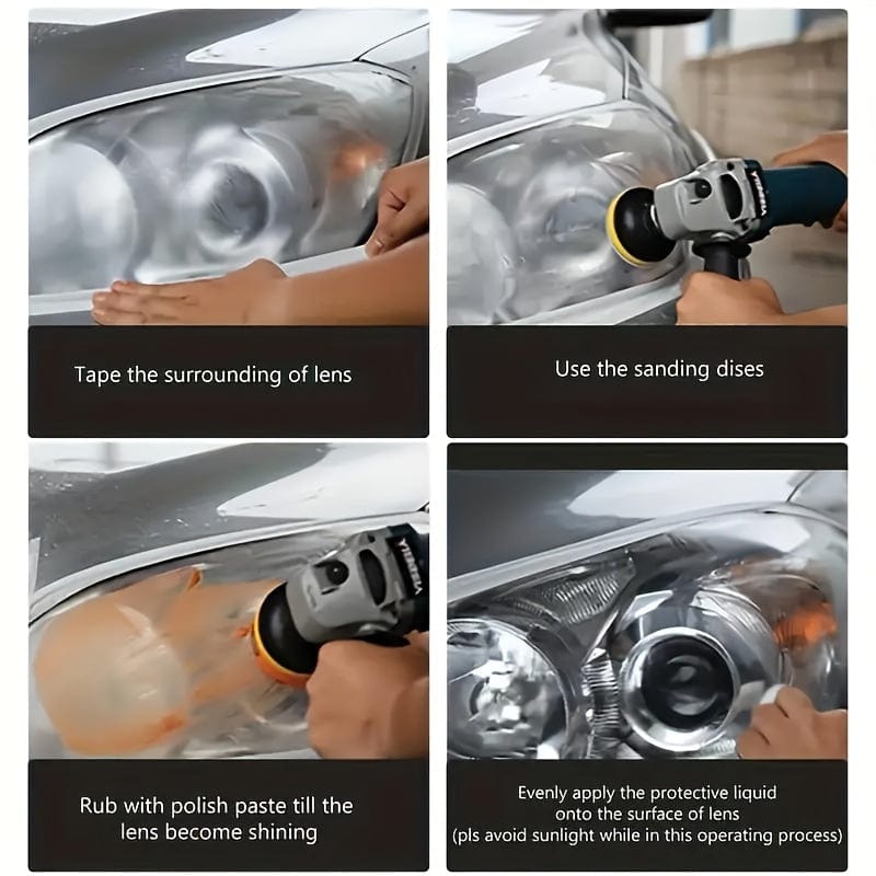 1. Headlight Repair Polishing Kit is used to Fix Various Problems: Yellowing, Scratching, Oxidation, Blurring, Etc., scrubber scouring pads and high-precision waterproof sanding discs.