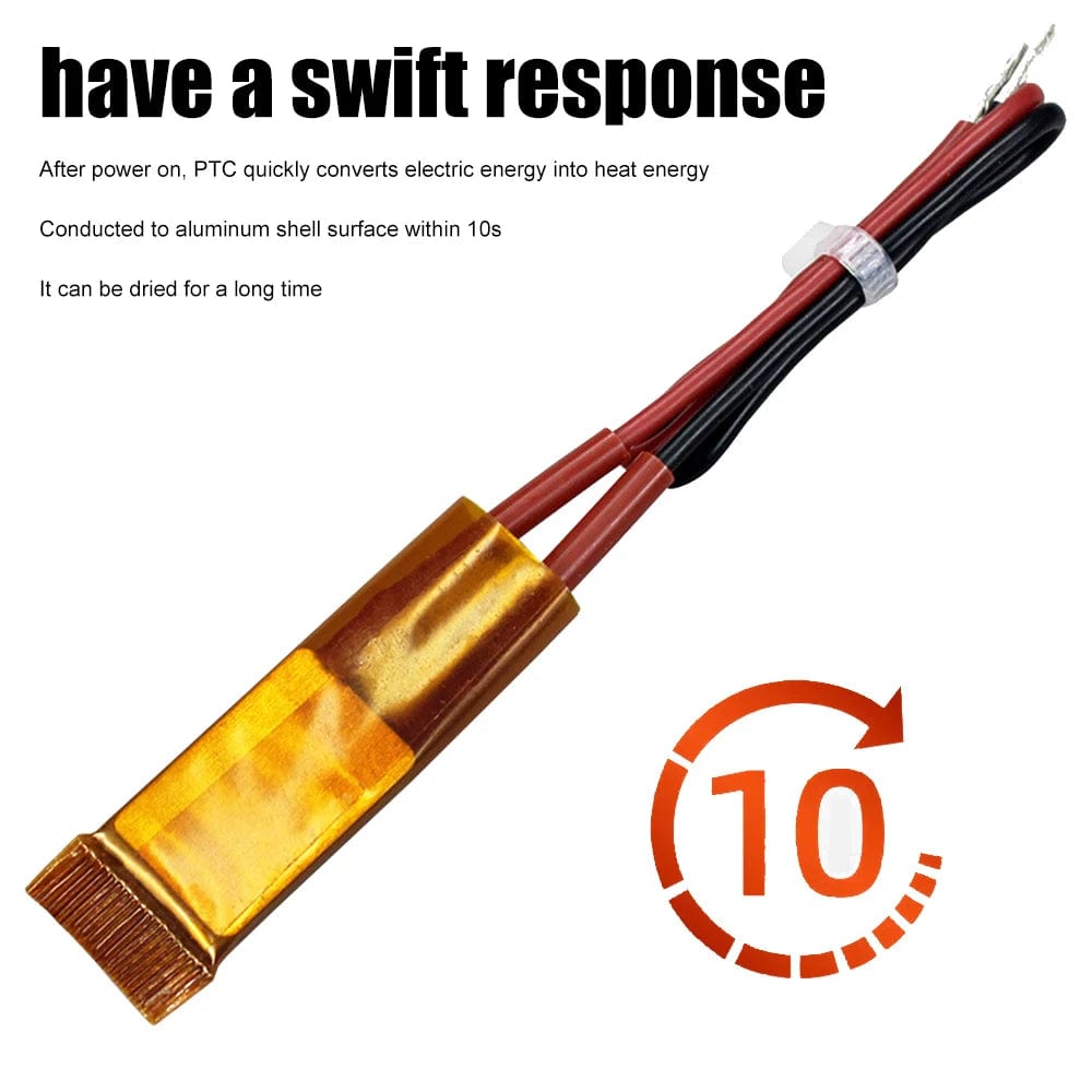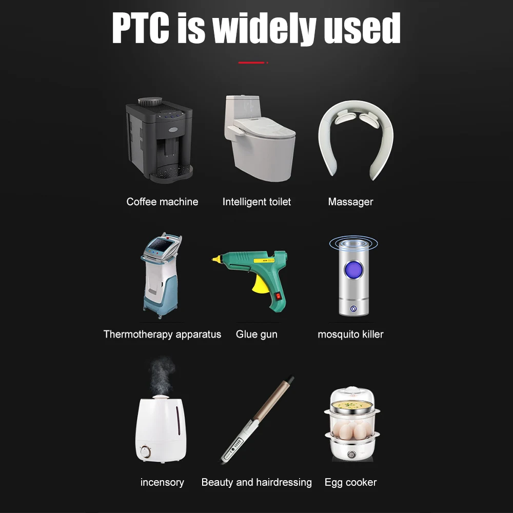 6. The reaction is rapid. After power on, PTC quickly converts electric energy into heat energy and conducts it to the aluminum shell surface within 10s, which can be dry burned for a long time.