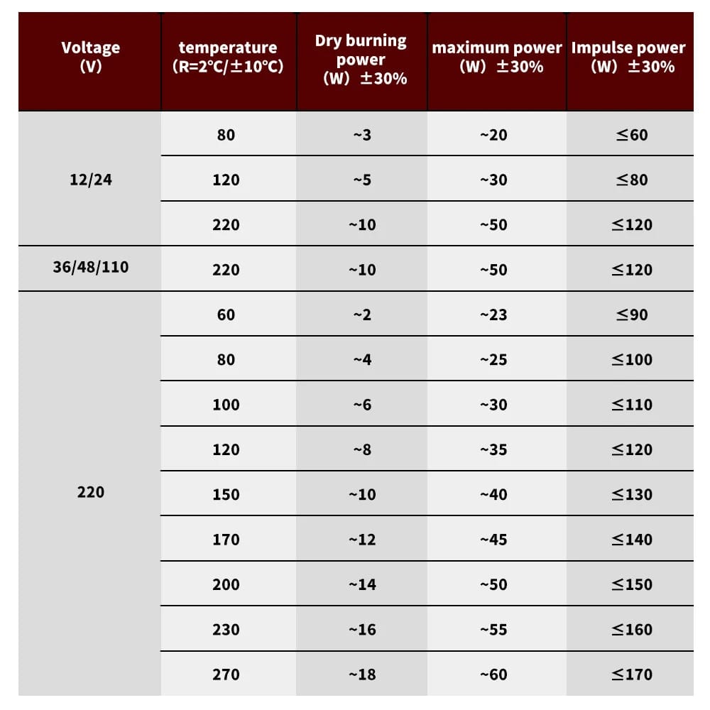 Surface temperature: 60~270 ℃
