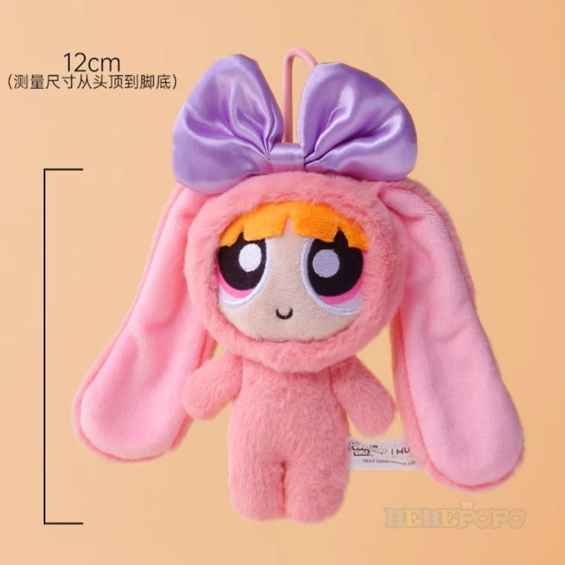 12cm Stuffed Animal Powerpuff Girls Cartoon Cute Dress Up Bunny Rabbit Plush Toy Pendant Bow Tie Doll Gift Doll for Girls