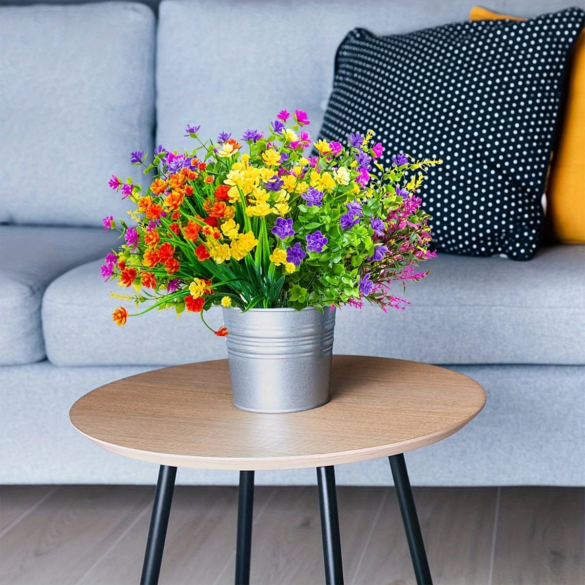 【Abundant Package】The artificial plants & flowers set includes 8 pcs artificial flowers (purple, fuchsia, yellow, orange), 4 pcs artificial lavender (purple, fuchsia) and 4 artificial wheat grass stems. Lush artificial flowers with greenery stems bring you the breath of nature.