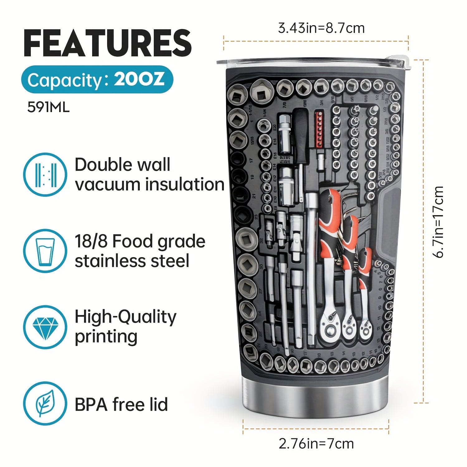 The travel tumbler with 20 oz capacity can satisfy your daily needs and comfortable to grip. Great companion for water, juice, coffee etc.