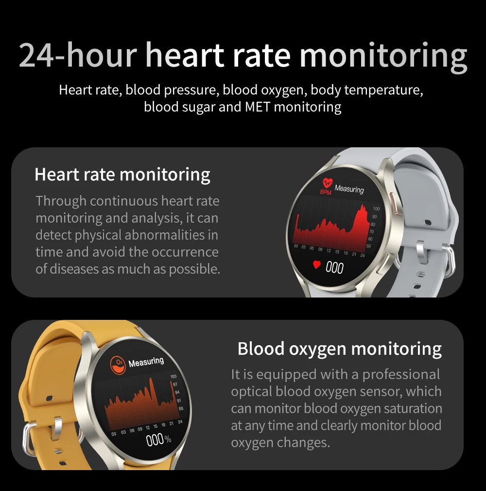Swipe right: split screen (weather, sleep, heart rate, blood pressure, blood oxygen, music, common applications).