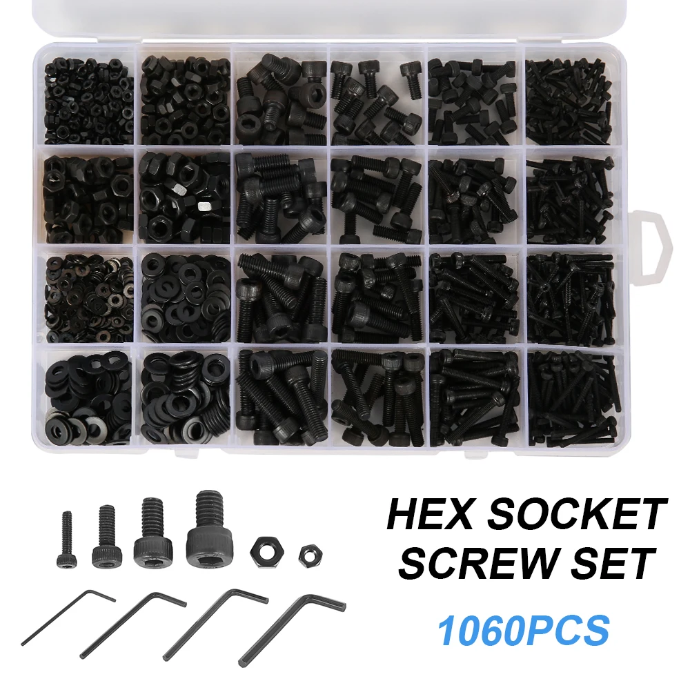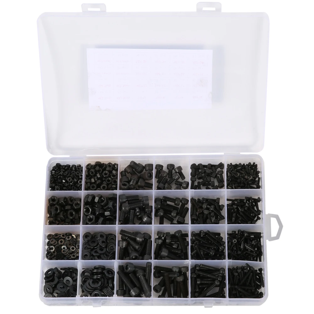 1.black carbon steel alloy steel cup head hexagon socket screw nut bolt flat washer screw washer kit