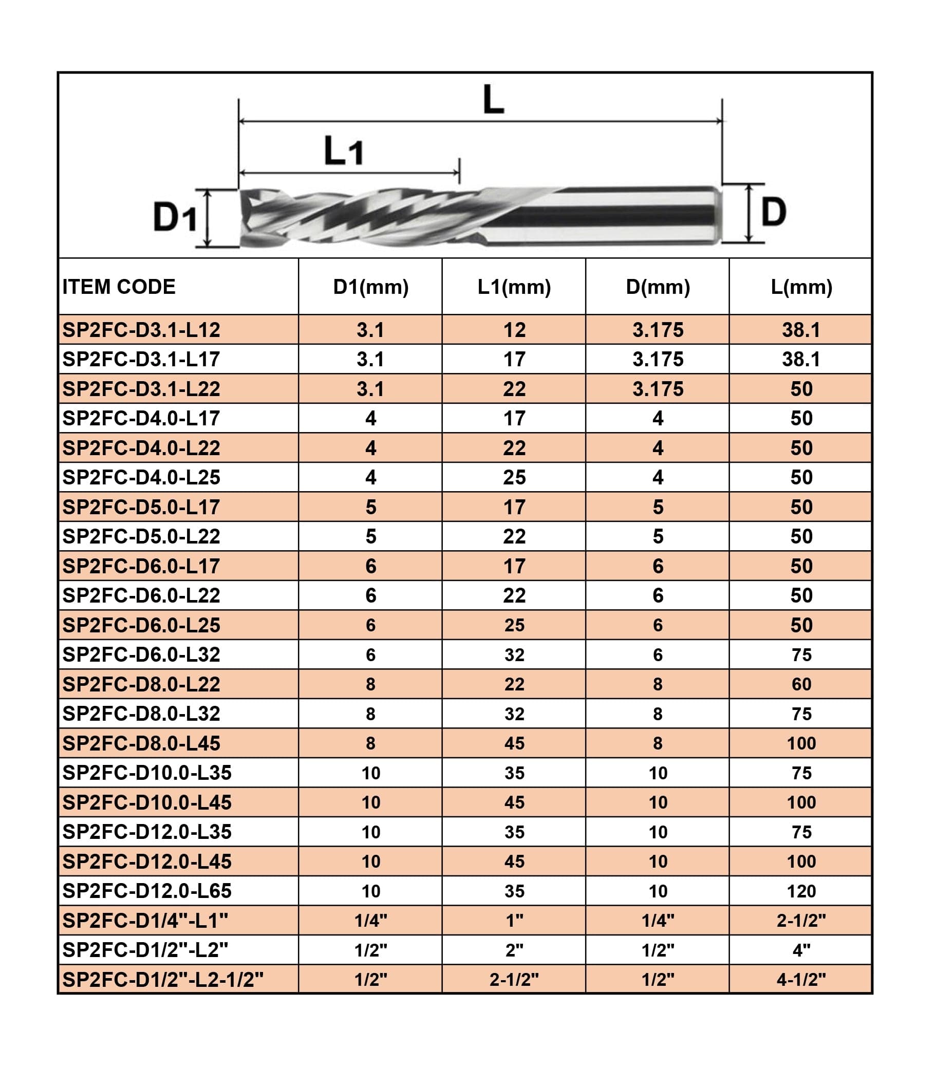 Model Number: Compression spiral end mill