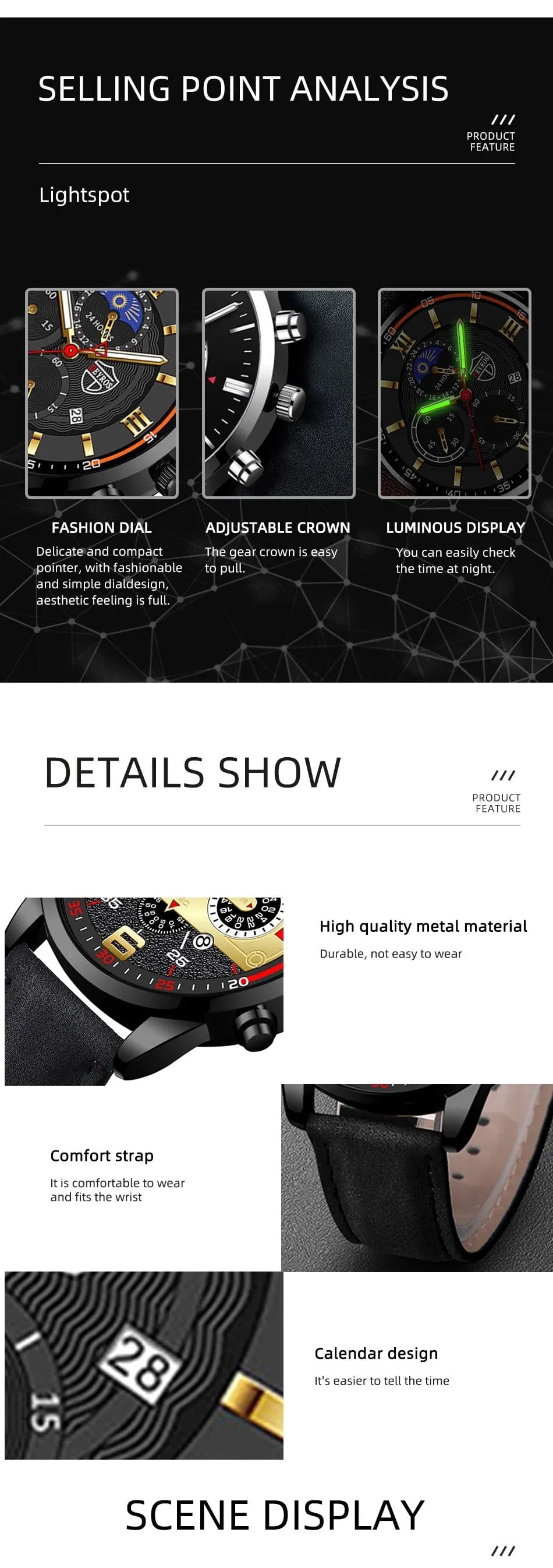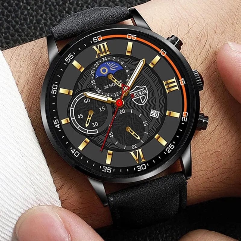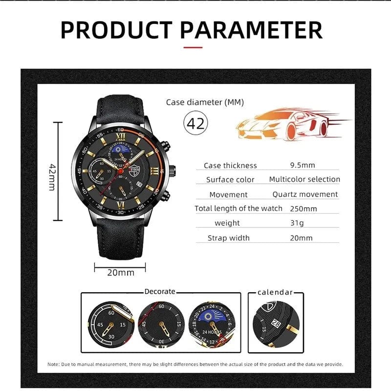 • Fashionable Design :With its sleek leather bracelet and round alloy case, this watch is a stylish accessory that complements any outfit.