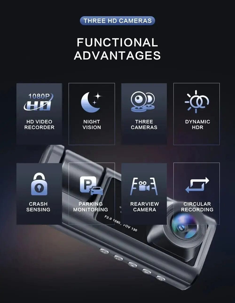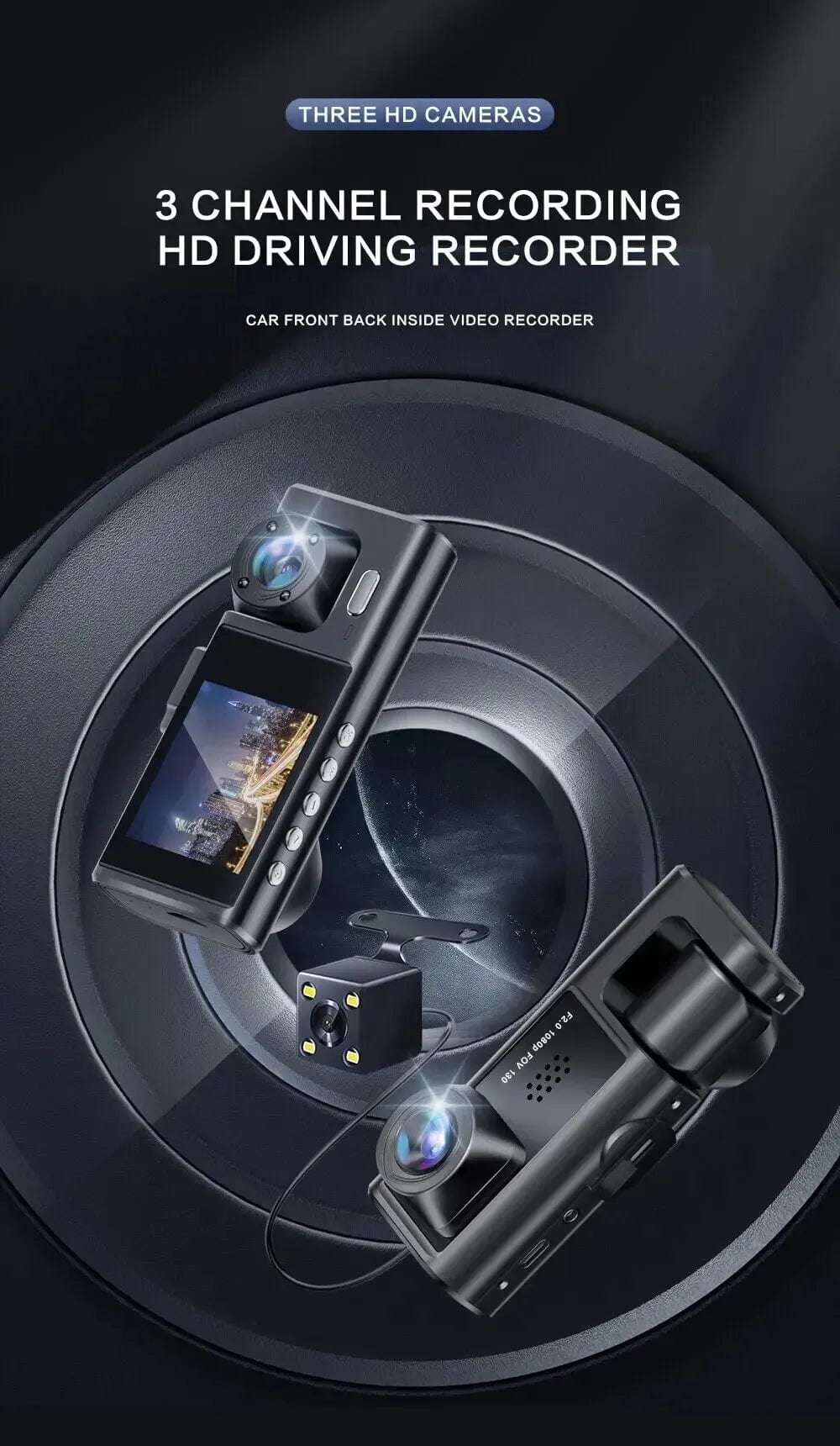 • Three-Channel Recording :Equipped with a three-channel recording system, this DVR ensures comprehensive coverage of your driving environment.