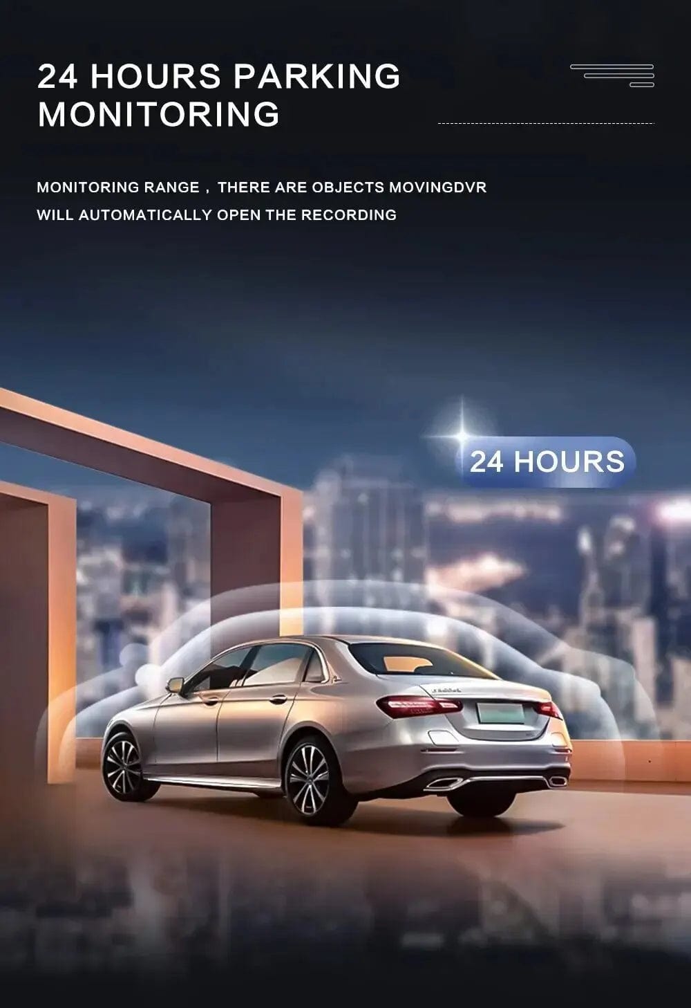 *6. 24-hour Parking Monitoring: Combined with parking monitoring, the driving recorder will automatically turn on and start recording when it detects external force, providing you with a sense of security at all times.