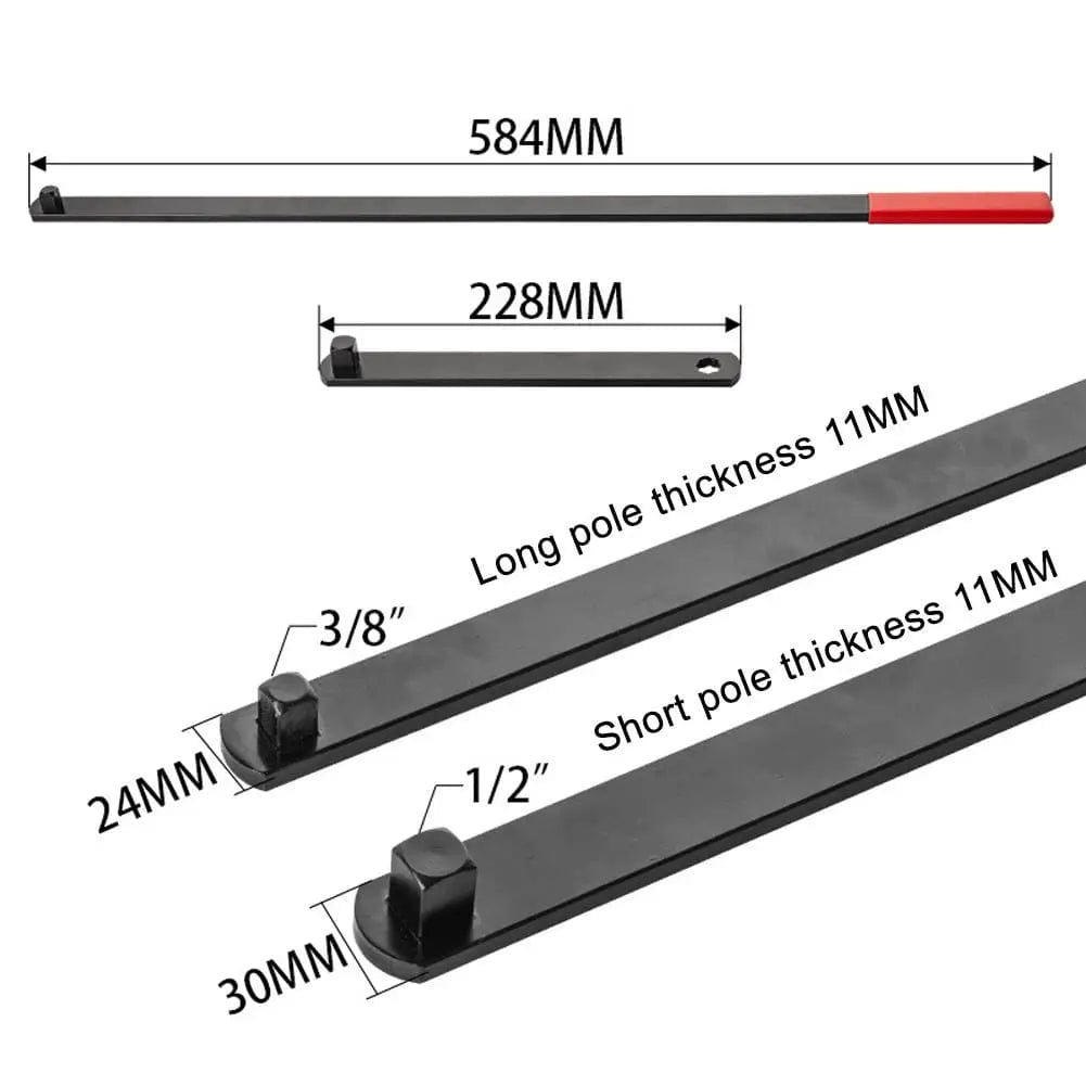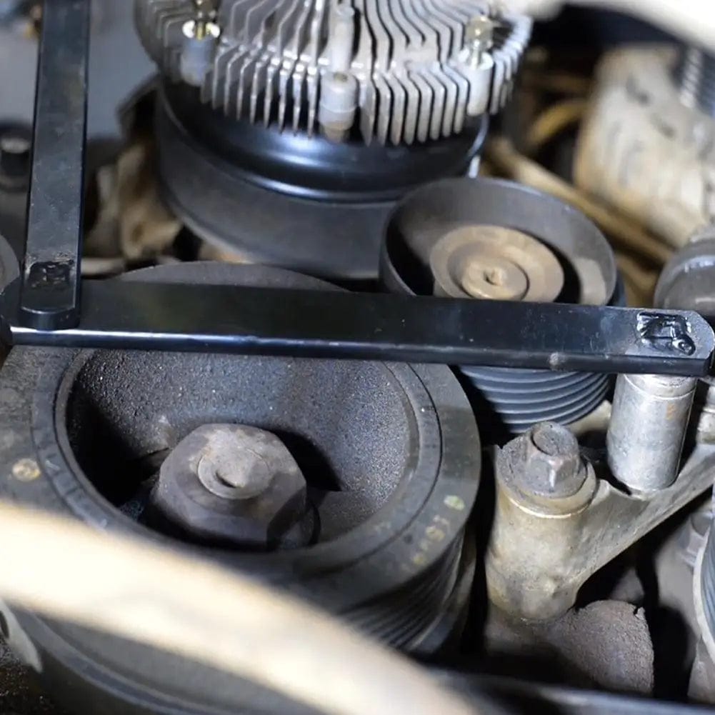 This tool is used to remove and install belts on serpentine belt systems using spring-loaded idler pulleys.
