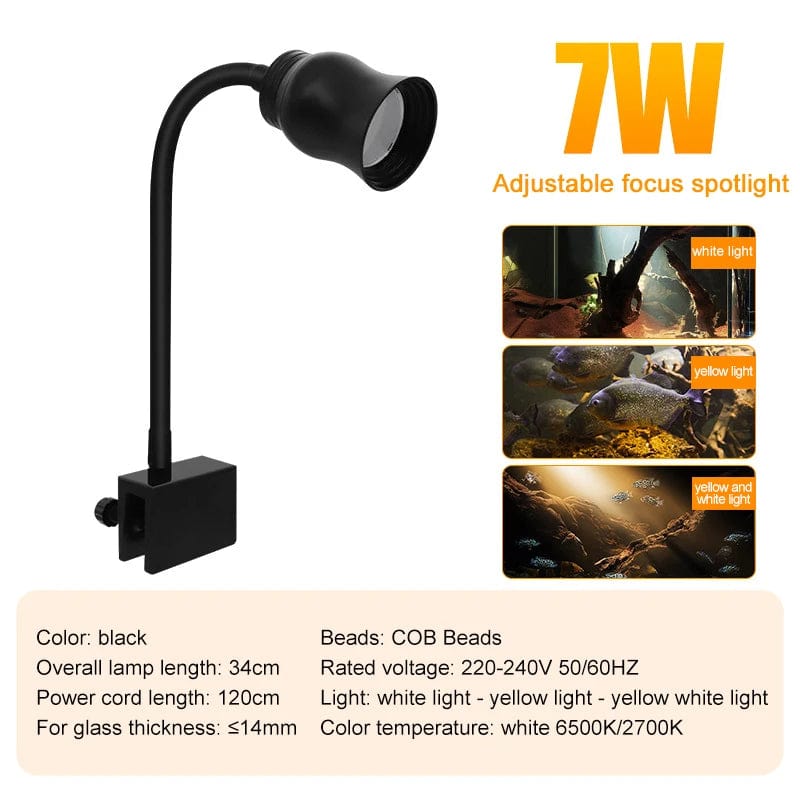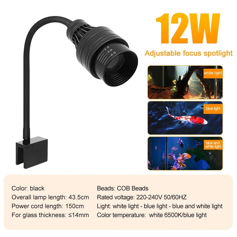 Aquarium Led Light Fish Tank Decoration Adjustable Focus Spotlight Plants Grow Lamp Turtle Reptiles Accessories 3w 5w 7w 9w 12w 15w
