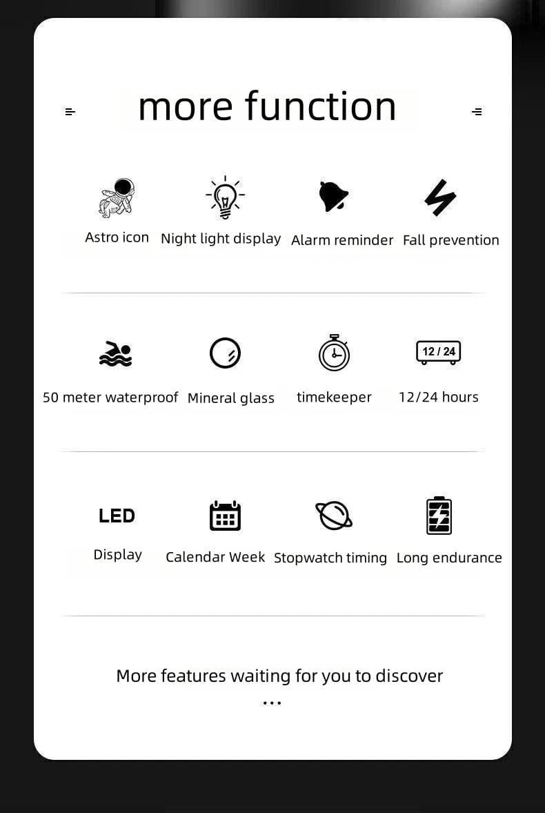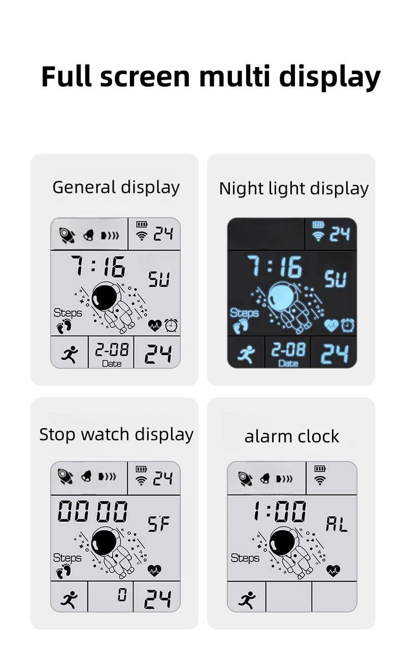Astro design, night light display, alarm clock reminder, shockproof and anti drop, calendar week.
