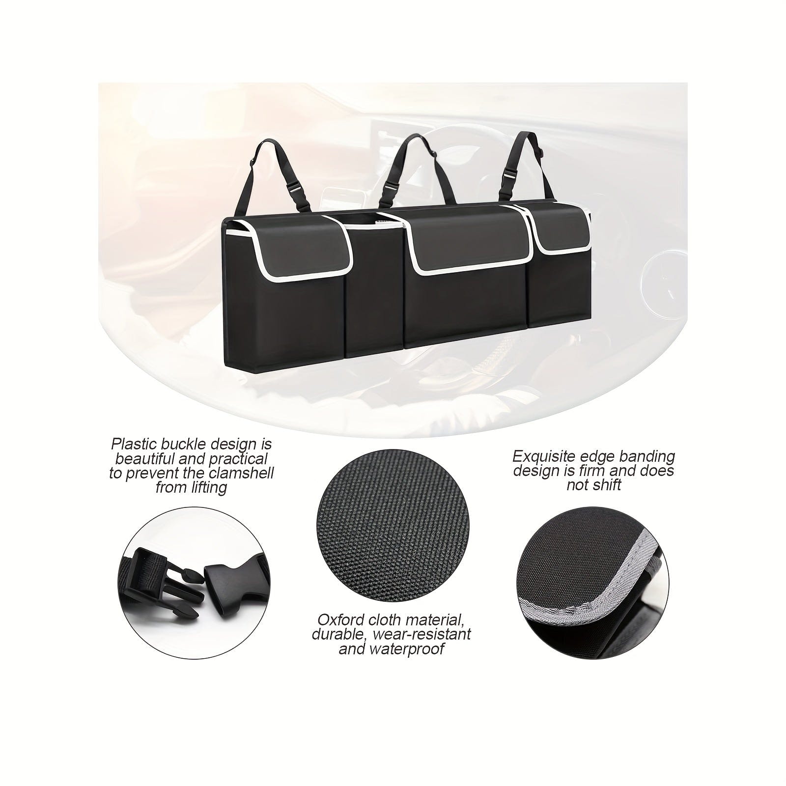 · Efficient Storage: Keep your car trunk organized and clutter-free with this trunk organizer and storage bag.