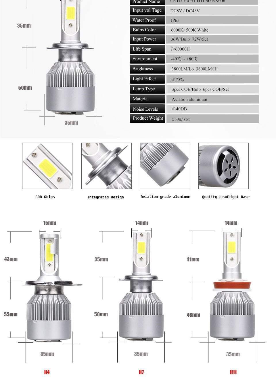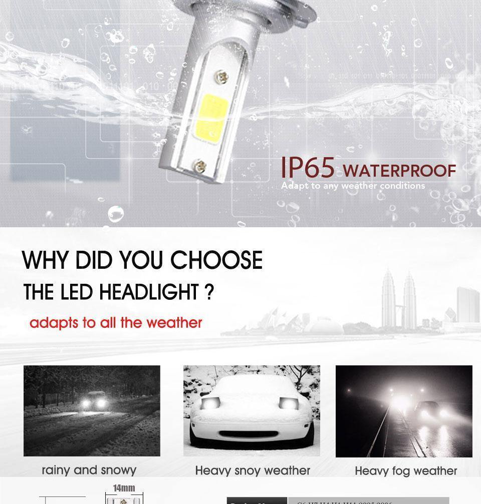 Led beam type: Pure White 6000K car headlight bulb