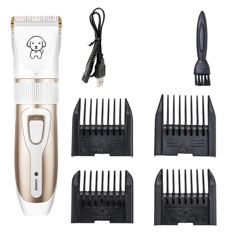 Options include combs, scissors, blade oil, nail clippers, USB charging cable and cleaning brushes.