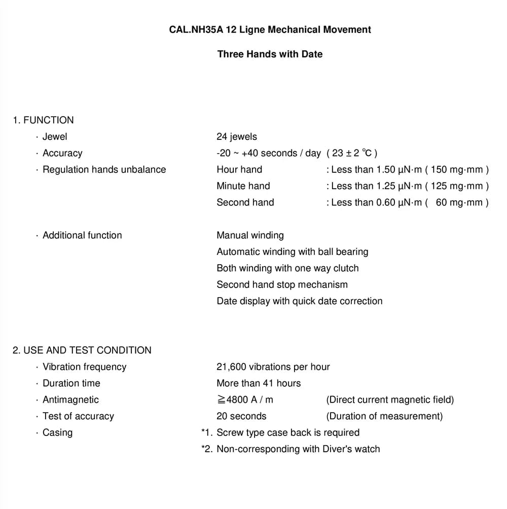 Caliber Number NH35A (aka NH35)