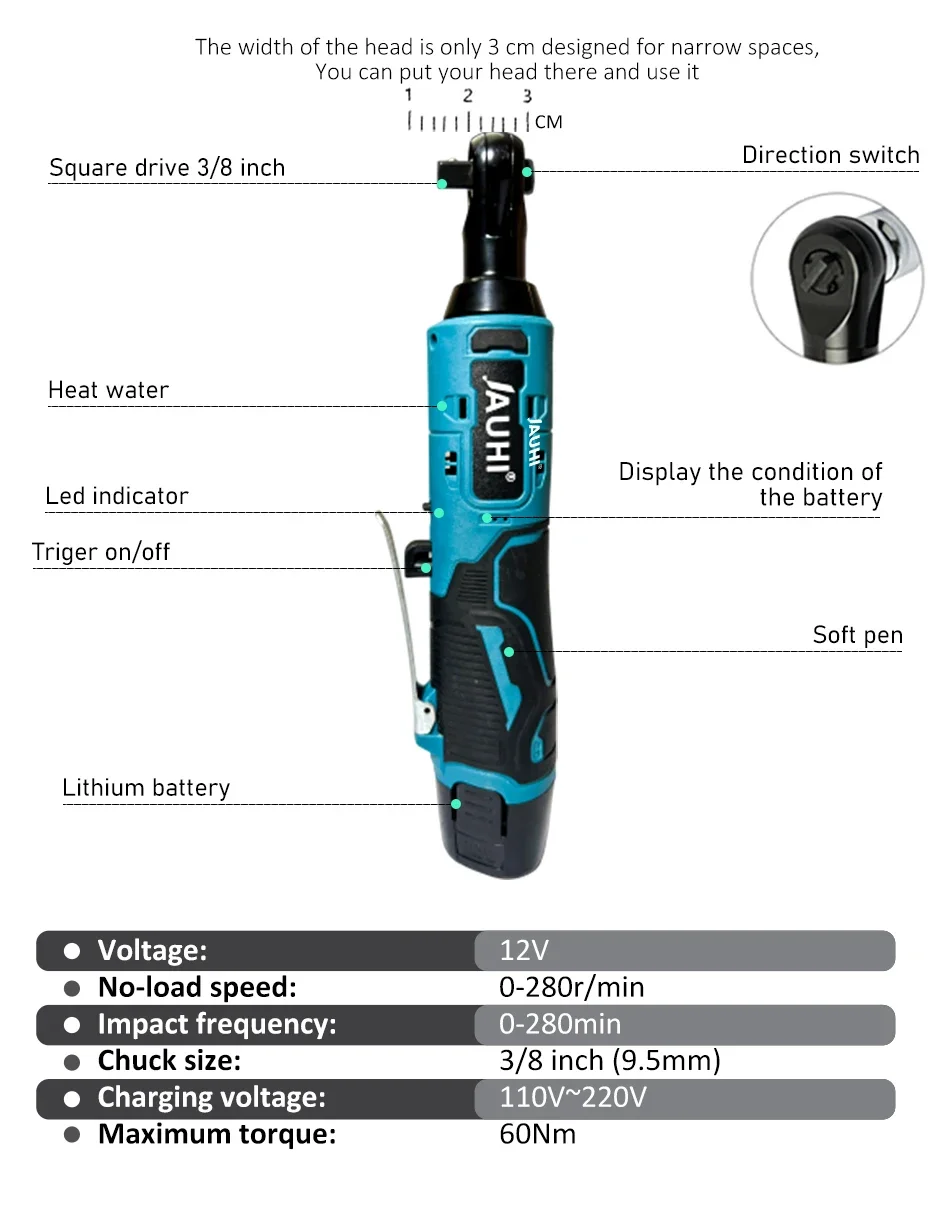 - **Smart Design**: Includes LED illumination, battery level display, and forward-reverse adjustment for a convenient operating experience.