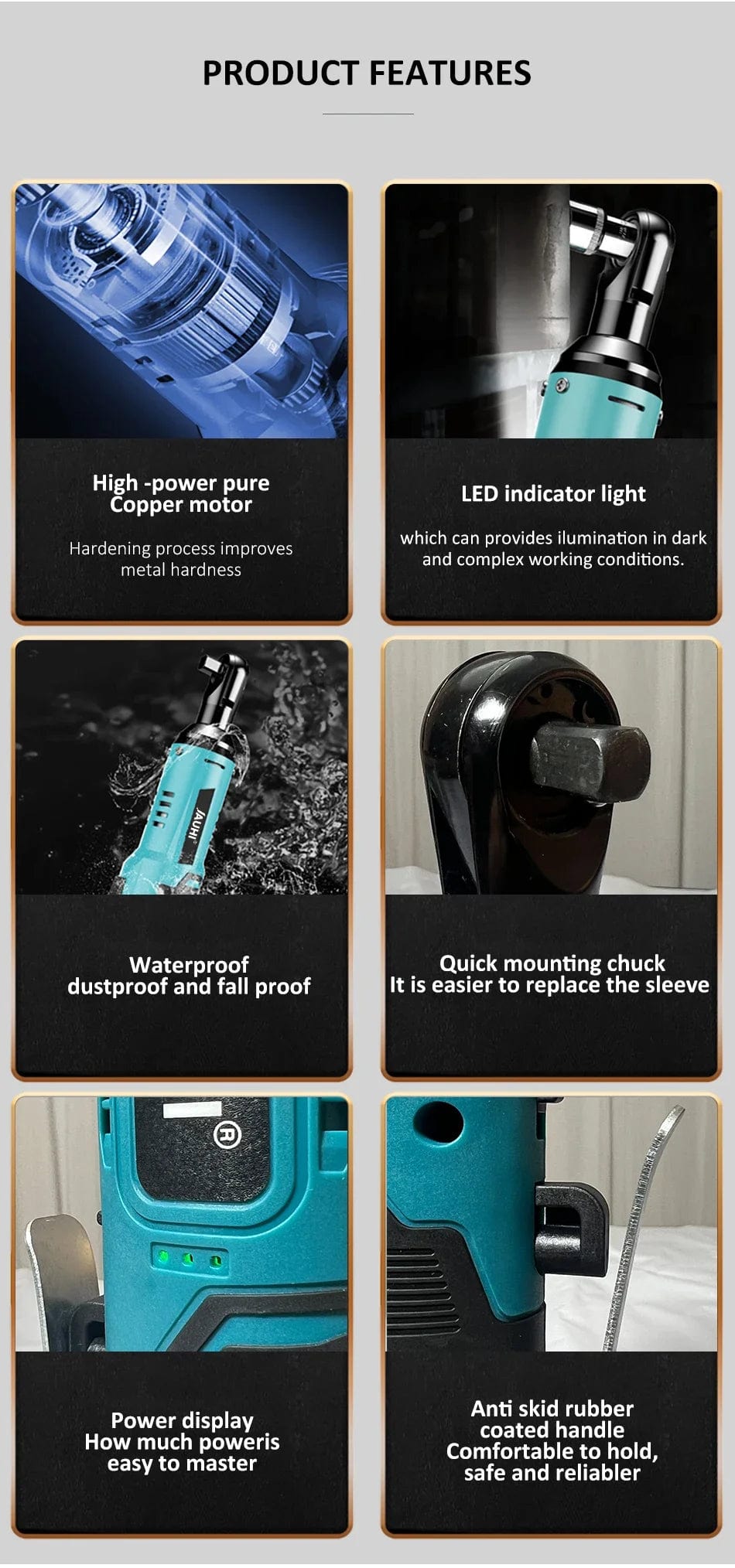 - **Universal Interface**: 3/8-inch (9.5mm) interface, suitable for various standard accessories.