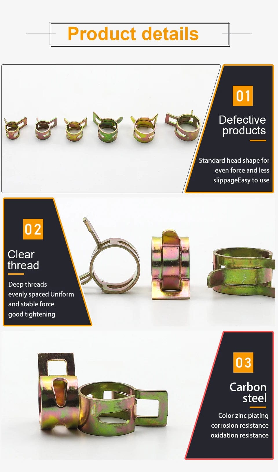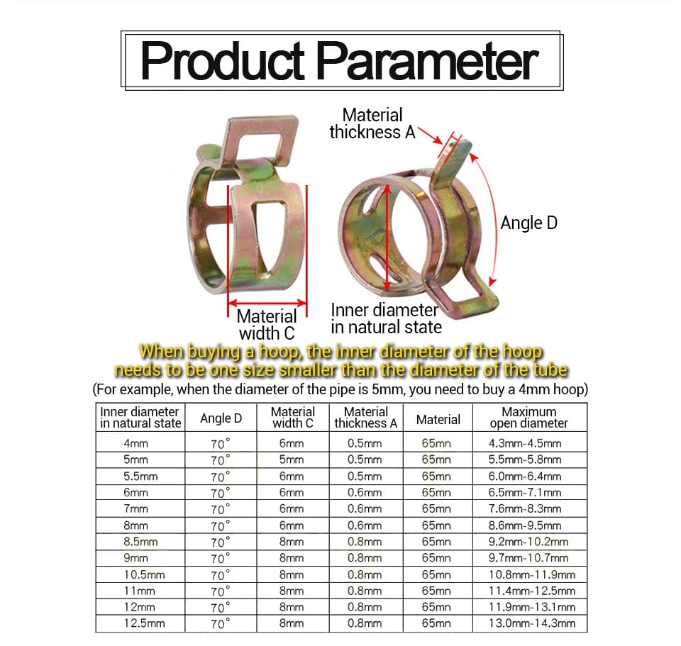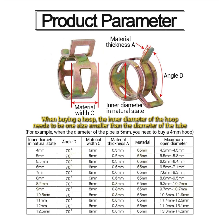 3. Spring hose clamps are used in a wide range of applications, suitable for fuel lines/vacuum hoses/gas pipe/air hose/water pipe/silicone hose, great choose for garage, boats, motorcycles, lawn and car engines connection, etc