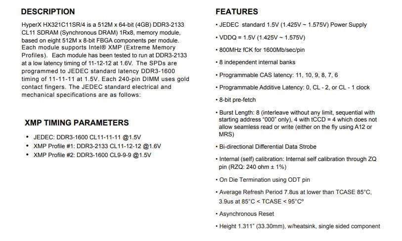 4GB 2133MHz 2PCS: HX321C11SR/4GBX2PCS