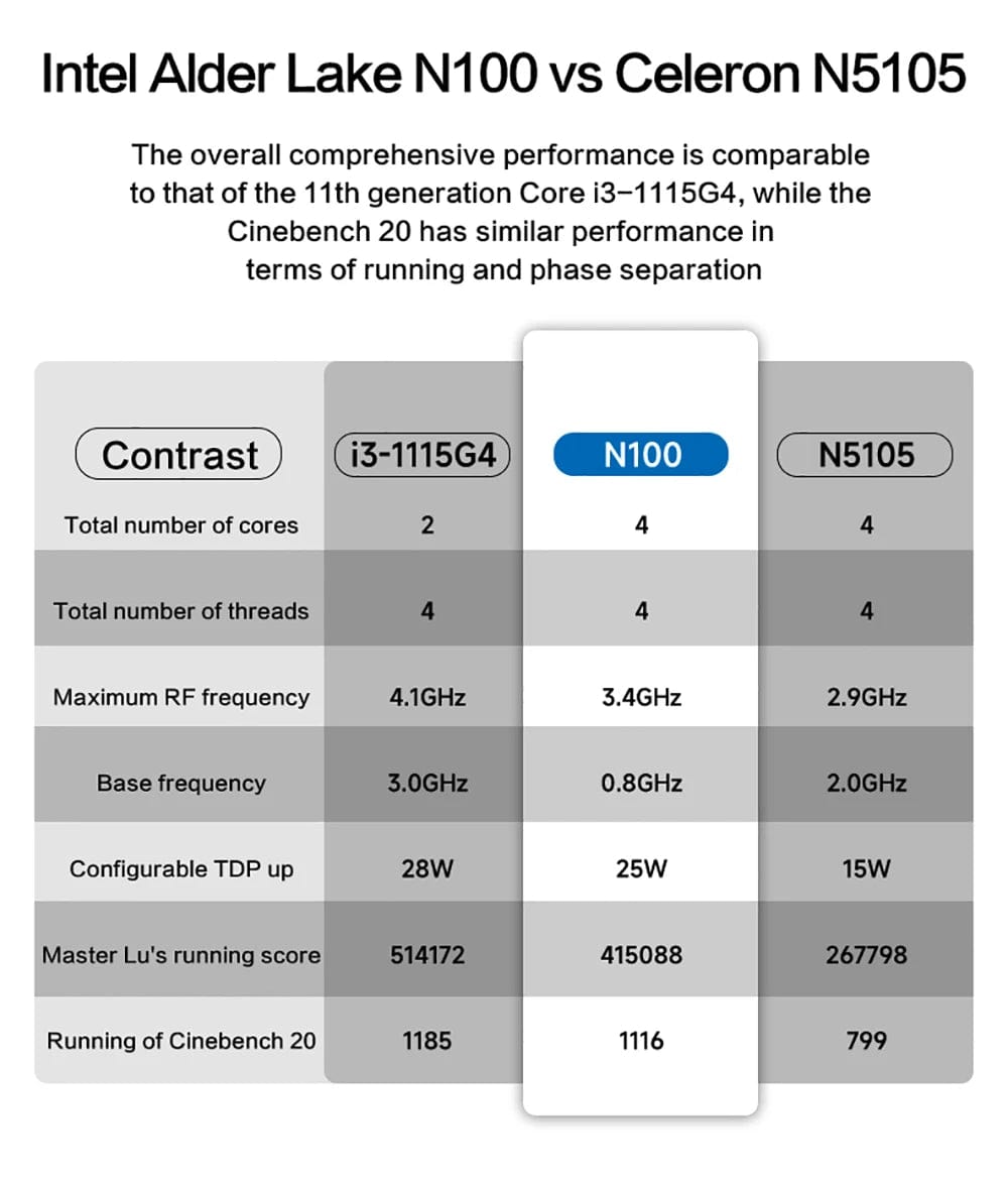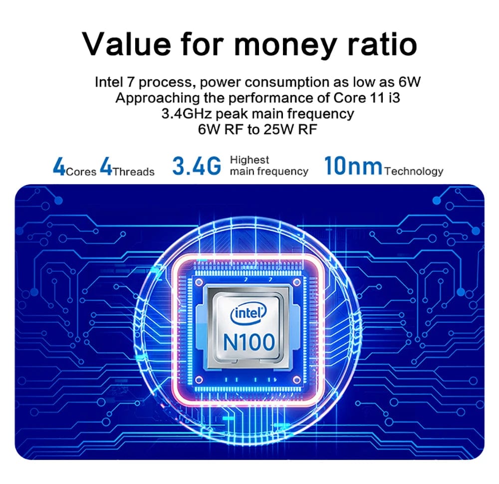 • High-Performance Processor :Powered by an Intel Alder Lake N100 processor, this mini PC ensures smooth and efficient performance for all your computing needs.
