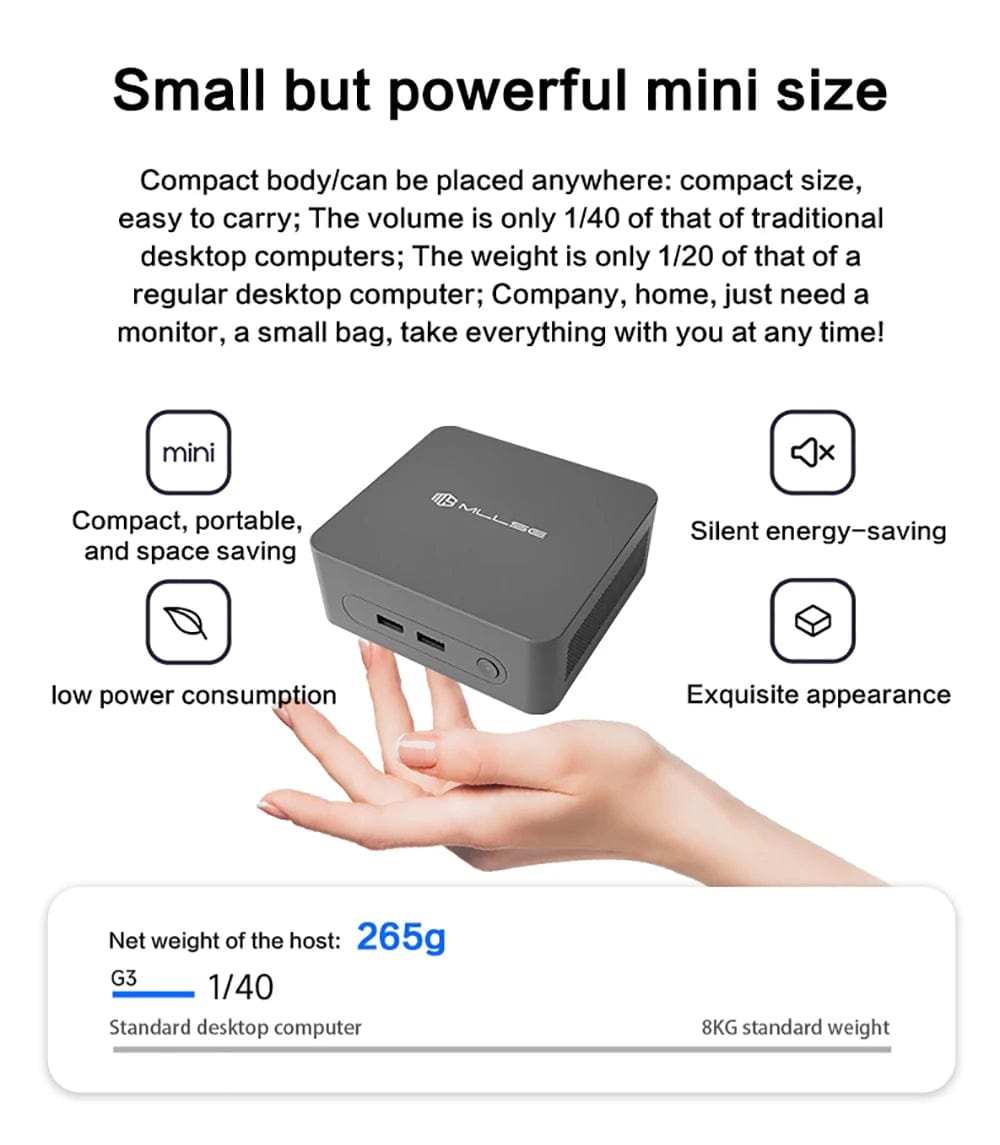 • Compact Design :The MLLSE G3 Mini PC's compact design makes it an ideal choice for spaces with limited space, offering powerful performance in a small package.
